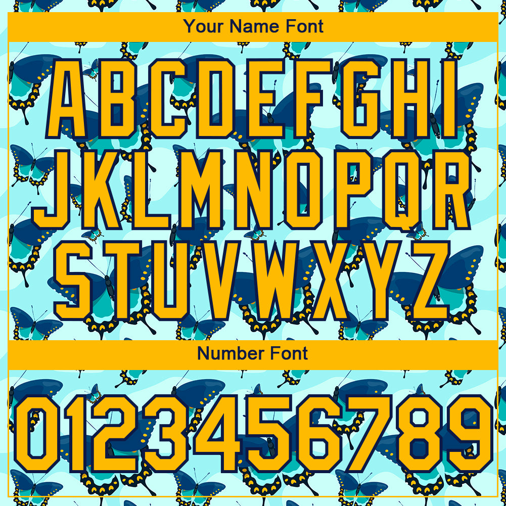 Custom Ice Blue Gold-Navy 3D Pattern Design Animal Butterfly Authentic Baseball Jersey