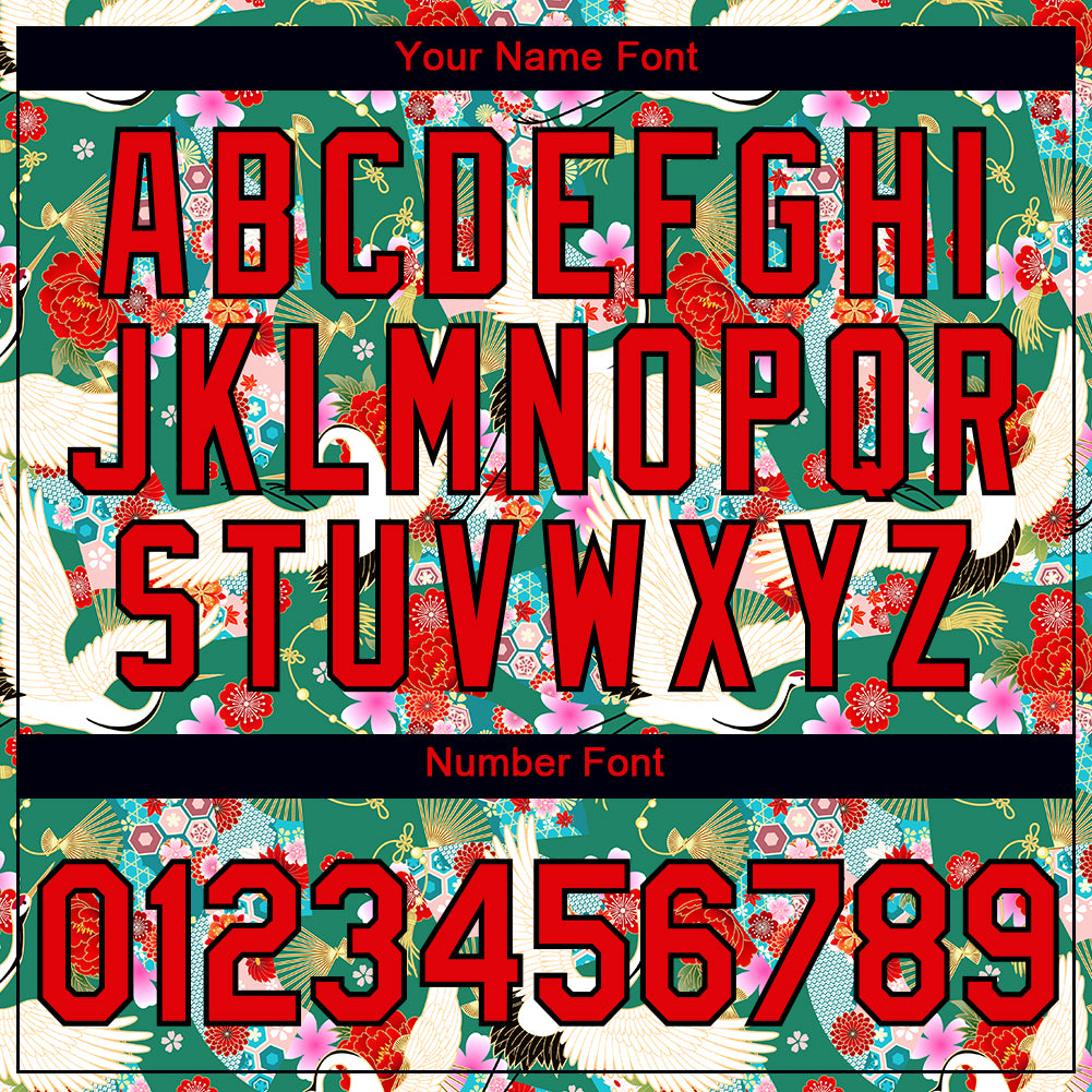 Custom Kelly Green Red-Black 3D Pattern Design Animal Crane Performance T-Shirt