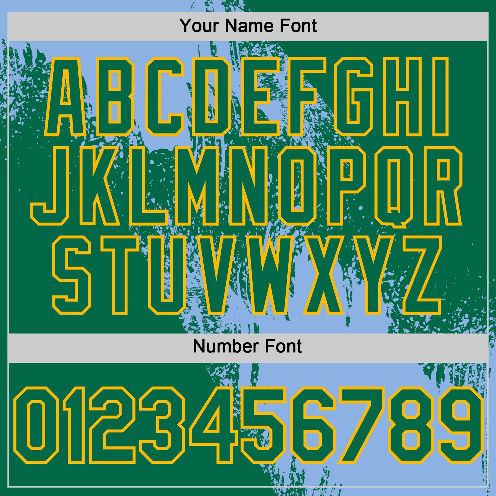 Custom Light Blue Kelly Green-Gold 3D Pattern Design Abstract Brush Stroke Authentic Baseball Jersey