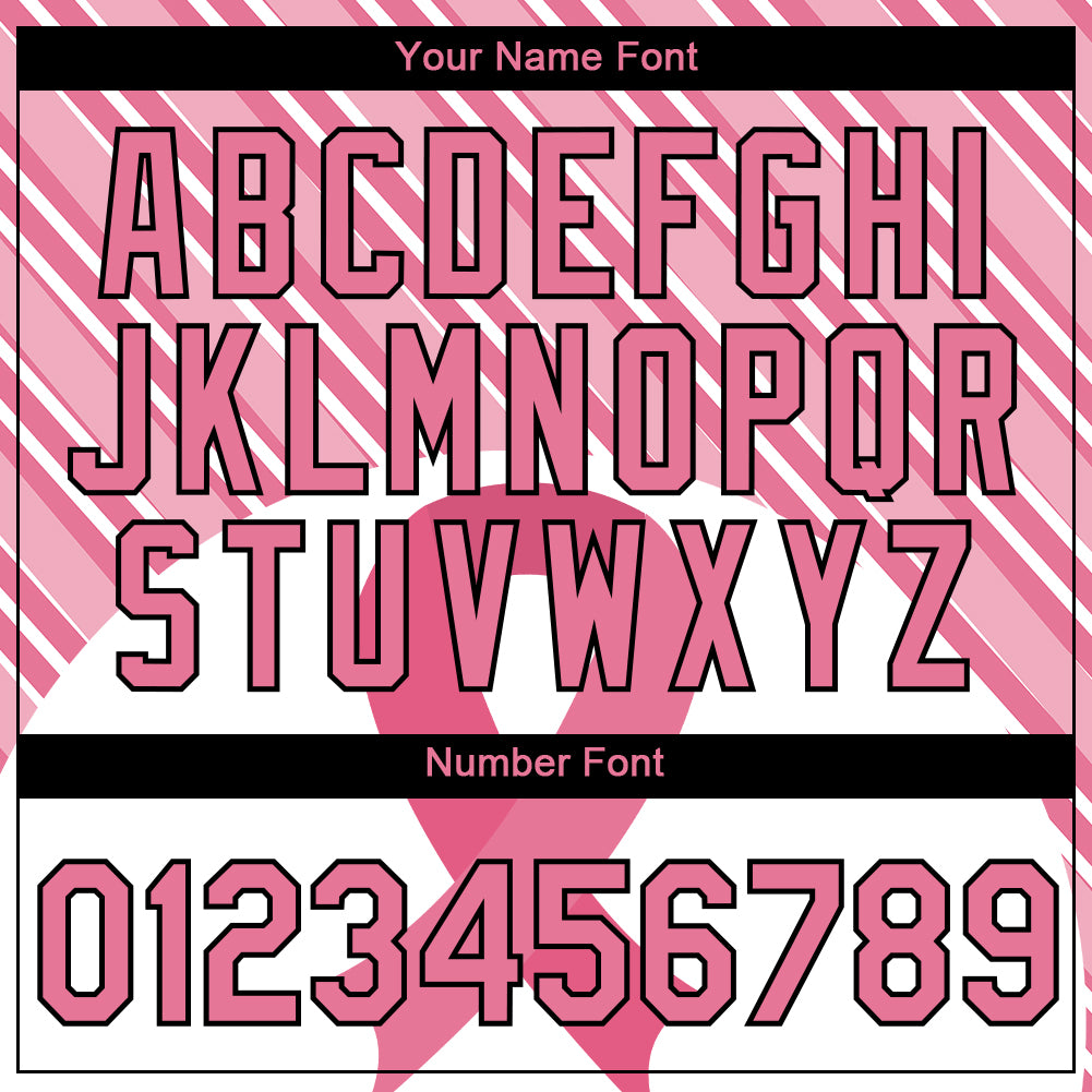Custom Medium Pink Black-White 3D Pink Ribbon Breast Cancer Performance T-Shirt