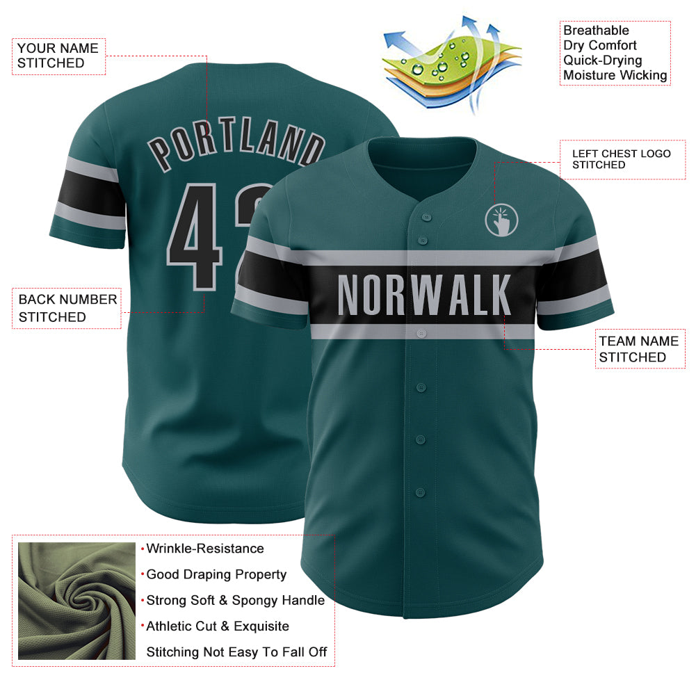 Custom Midnight Green Black-Gray Authentic Baseball Jersey