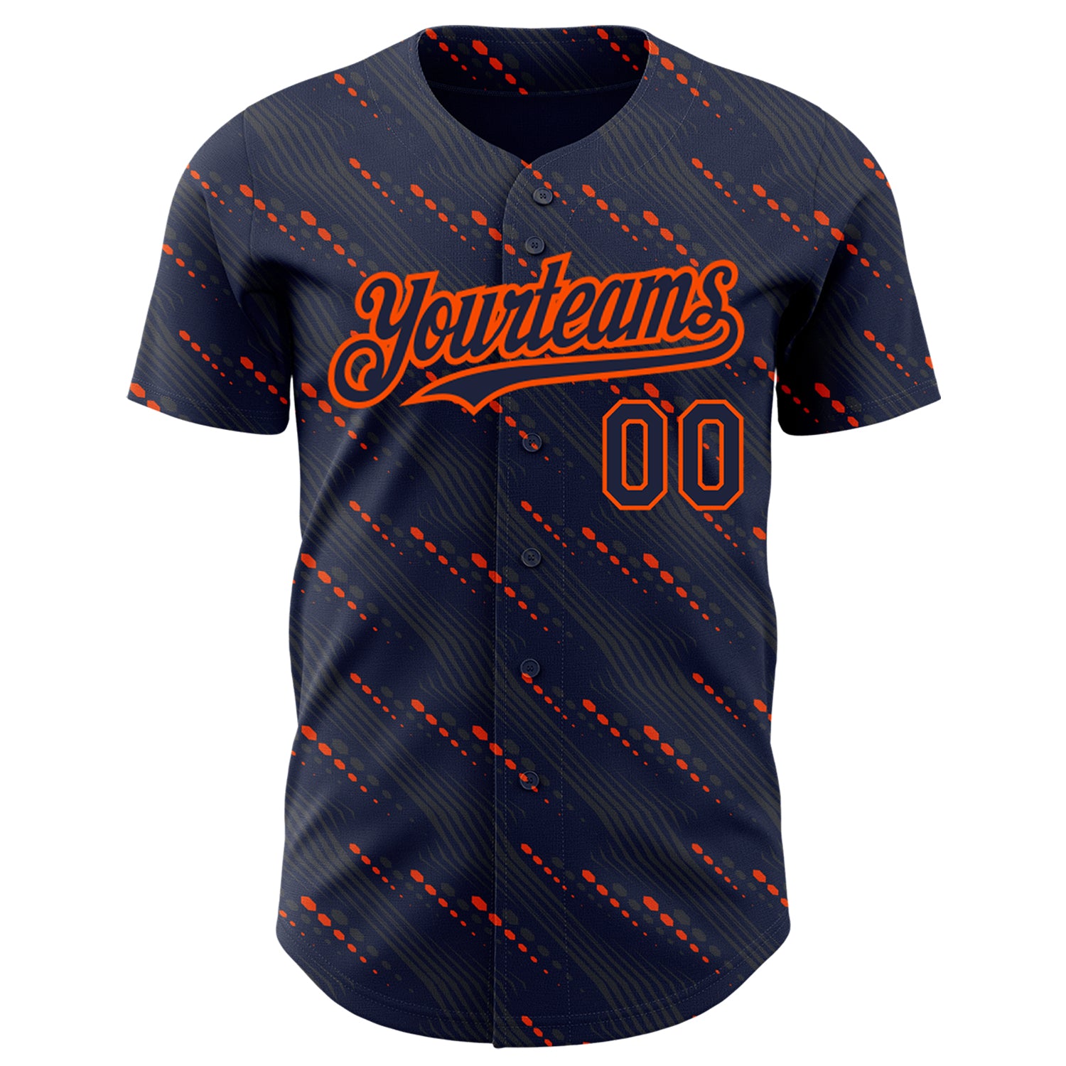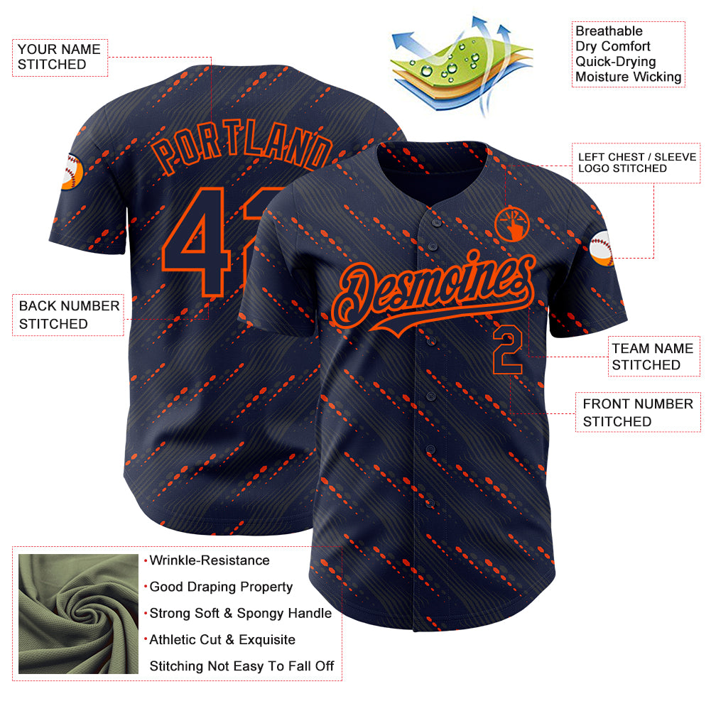 Custom Navy Orange 3D Pattern Design Slant Lines Authentic Baseball Jersey
