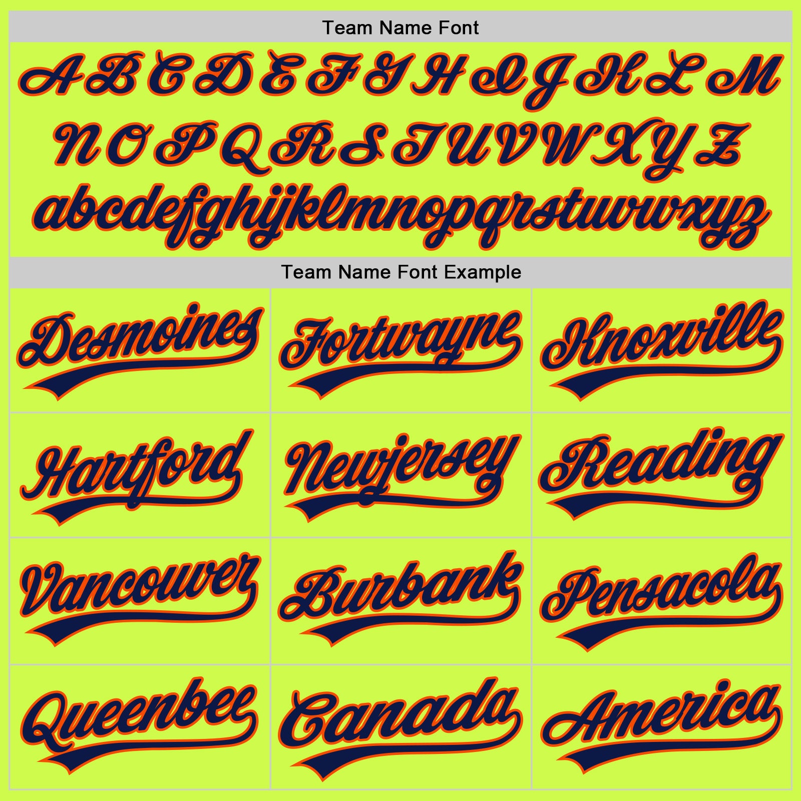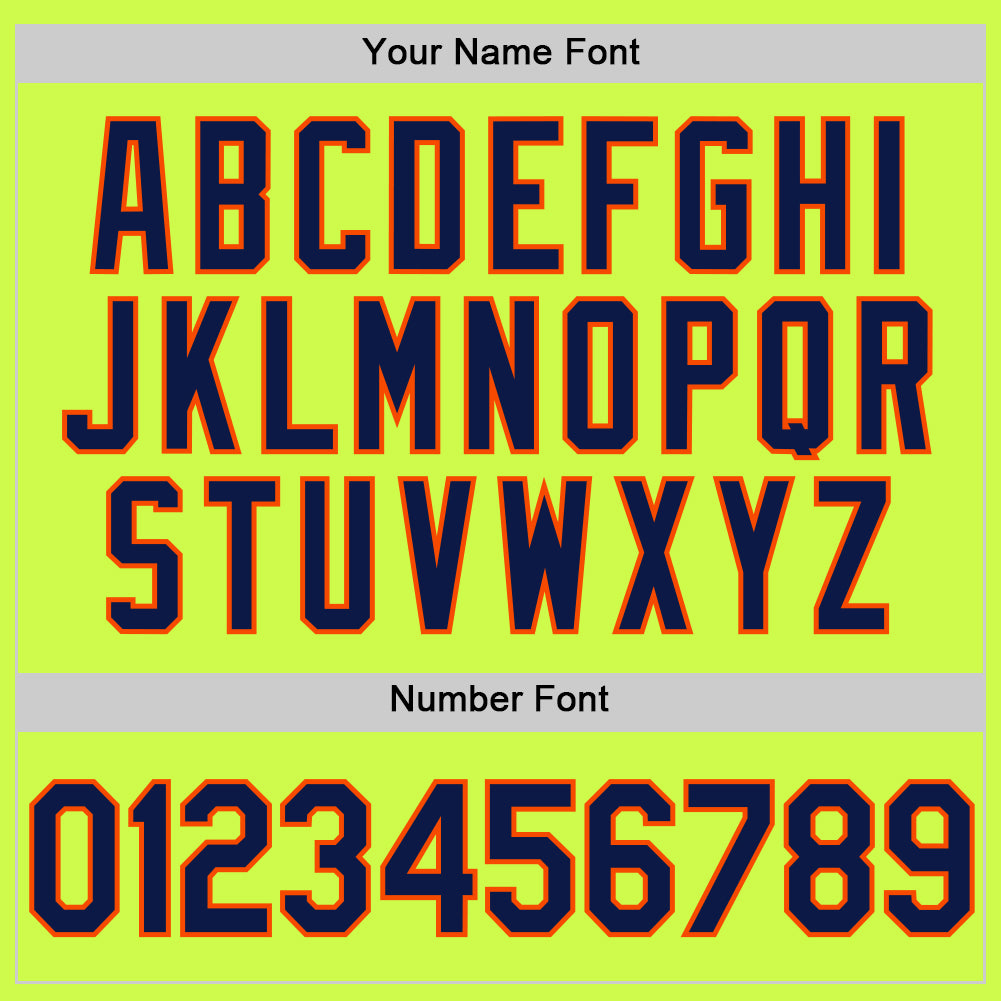 Custom Neon Green Navy-Orange Authentic Throwback Baseball Jersey