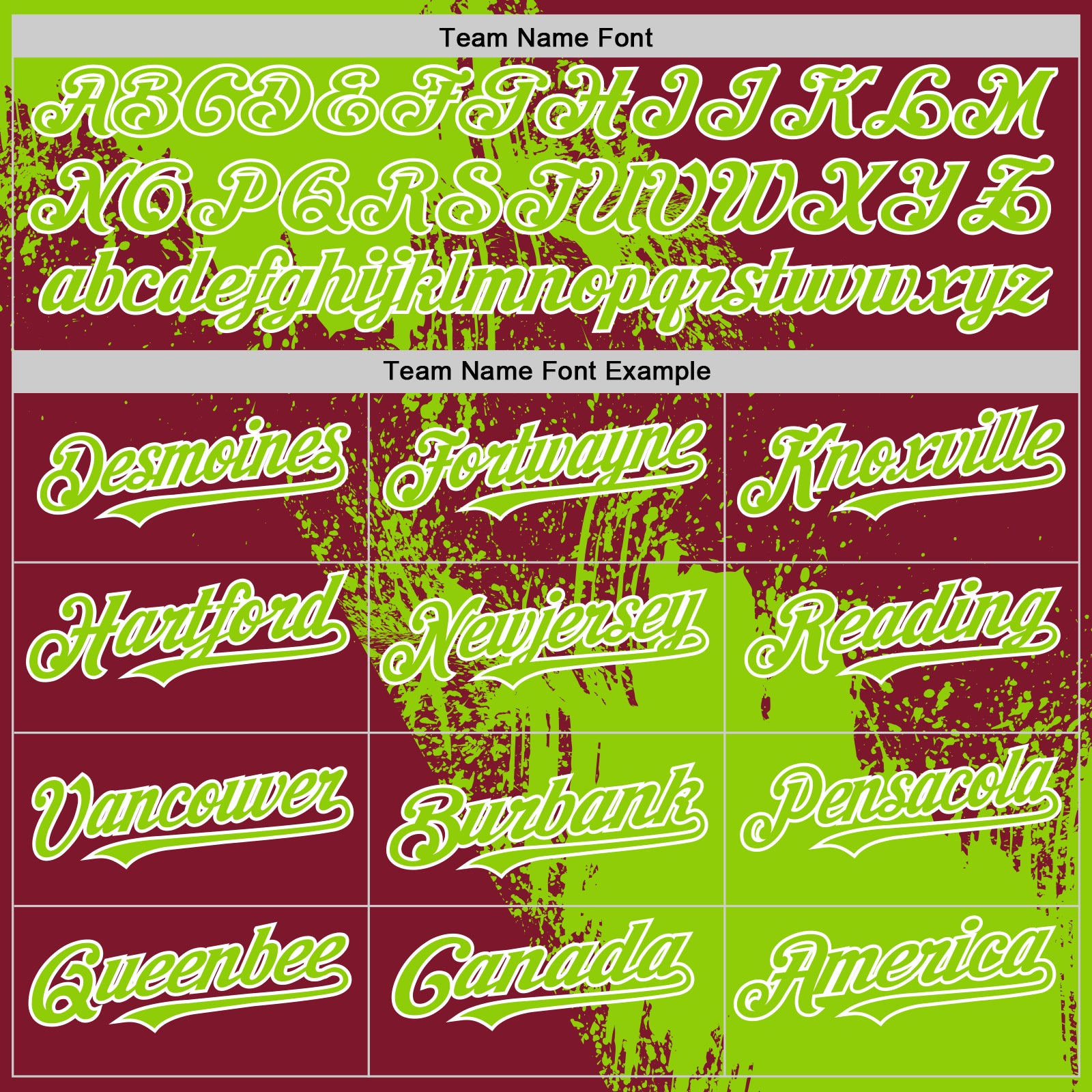 Custom Neon Green Crimson-White 3D Pattern Design Abstract Brush Stroke Authentic Baseball Jersey