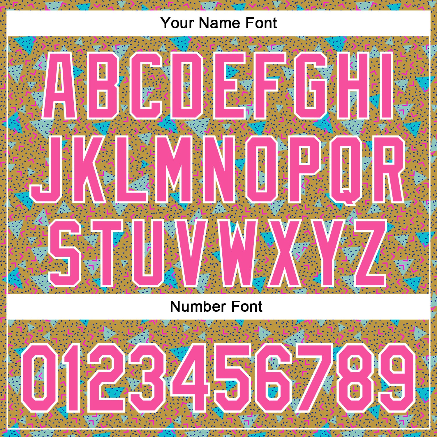 Custom Old Gold Pink-White 3D Pattern Design Geometric Shape Authentic Baseball Jersey