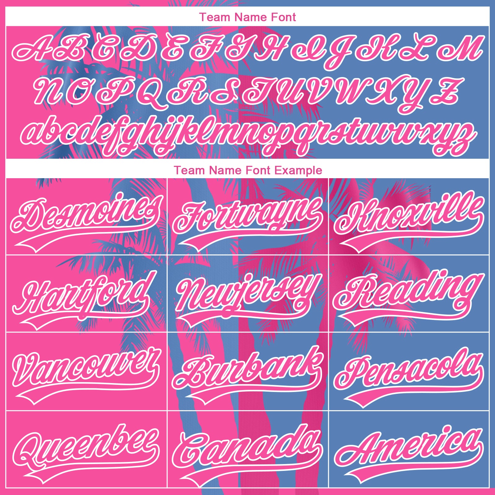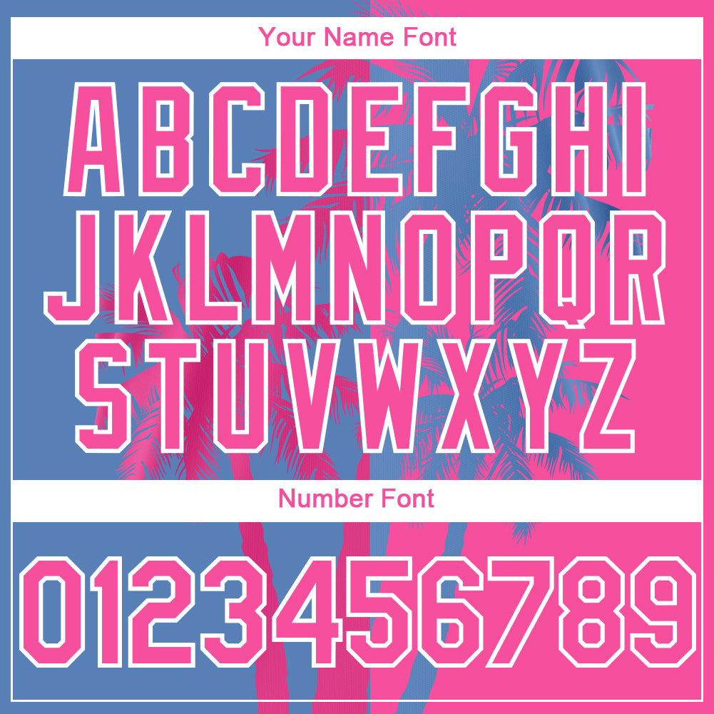 Custom Pink Light Blue-White 3D Pattern Hawaii Coconut Trees Two-Button Unisex Softball Jersey
