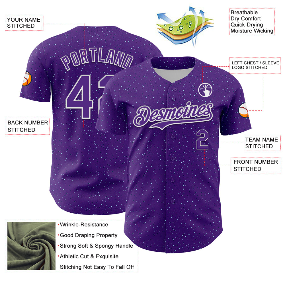 Custom Purple White 3D Pattern Design Dots Authentic Baseball Jersey