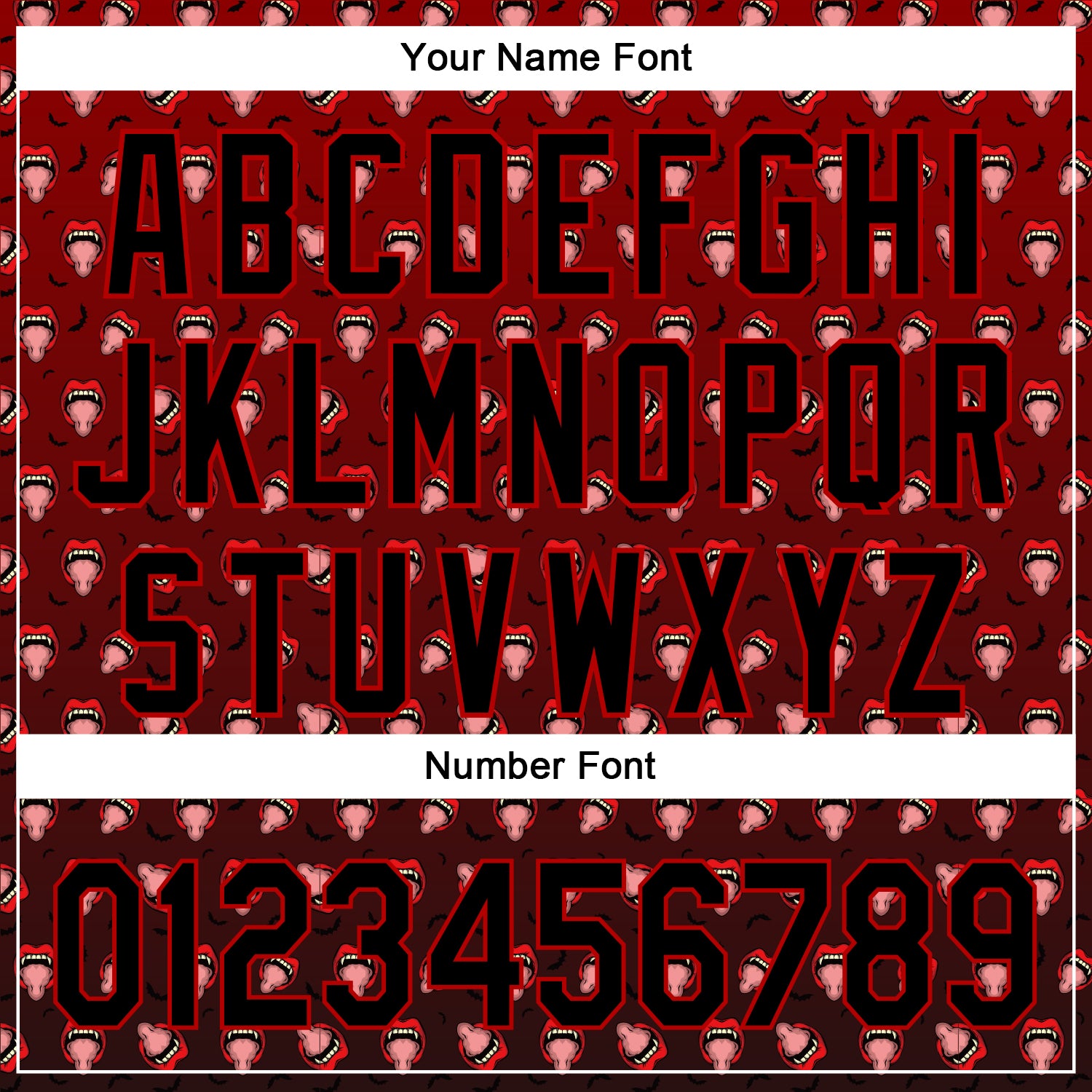 Custom Red Black 3D Pattern Design Gothic Style Devil Authentic Baseball Jersey