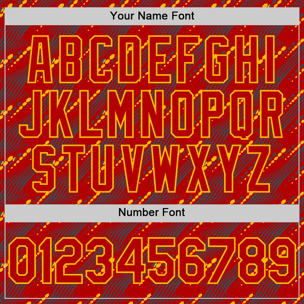 Custom Red Gold 3D Pattern Design Slant Lines Authentic Baseball Jersey