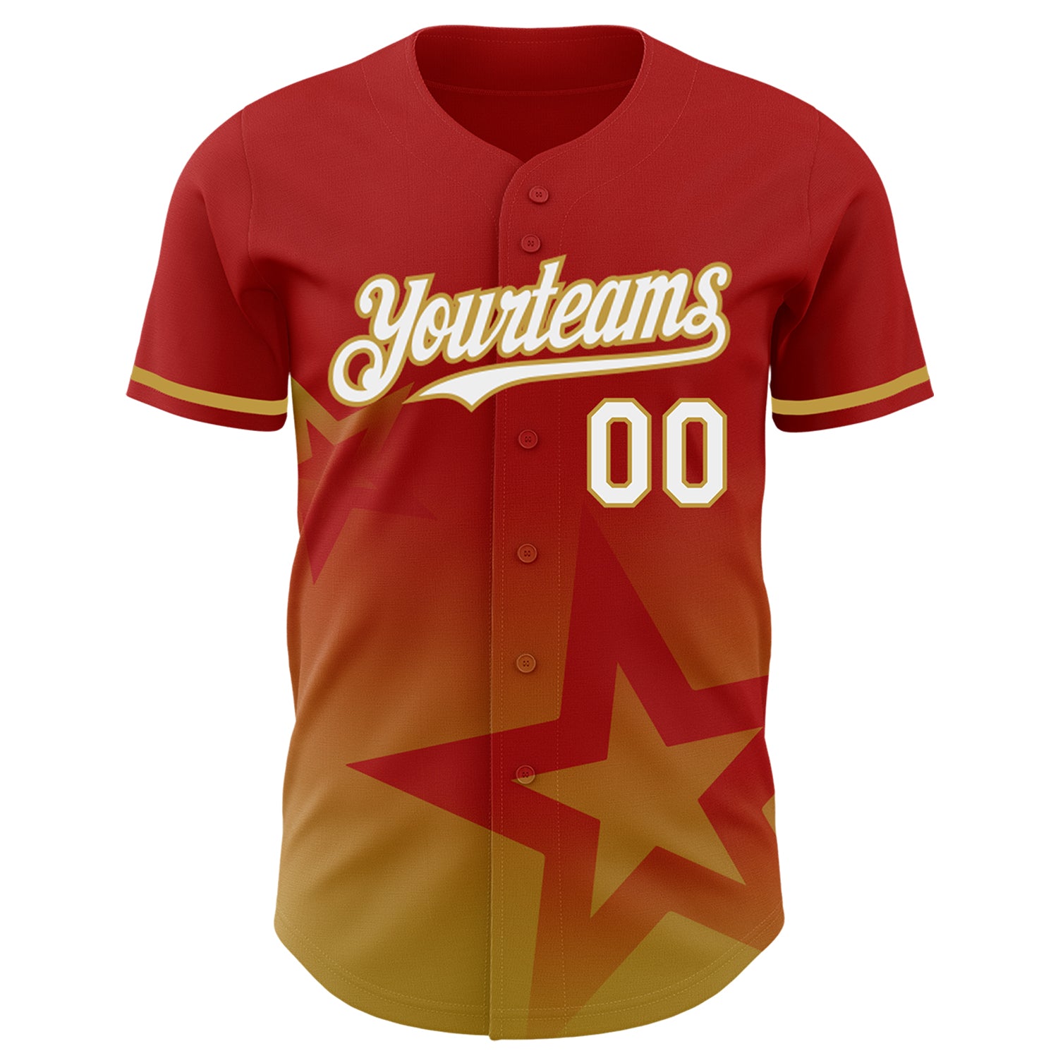 Custom Red White-Old Gold 3D Pattern Design Gradient Style Twinkle Star Authentic Baseball Jersey
