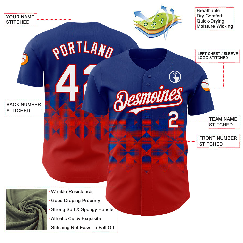 Custom Royal White-Red 3D Pattern Design Gradient Square Shapes Authentic Baseball Jersey