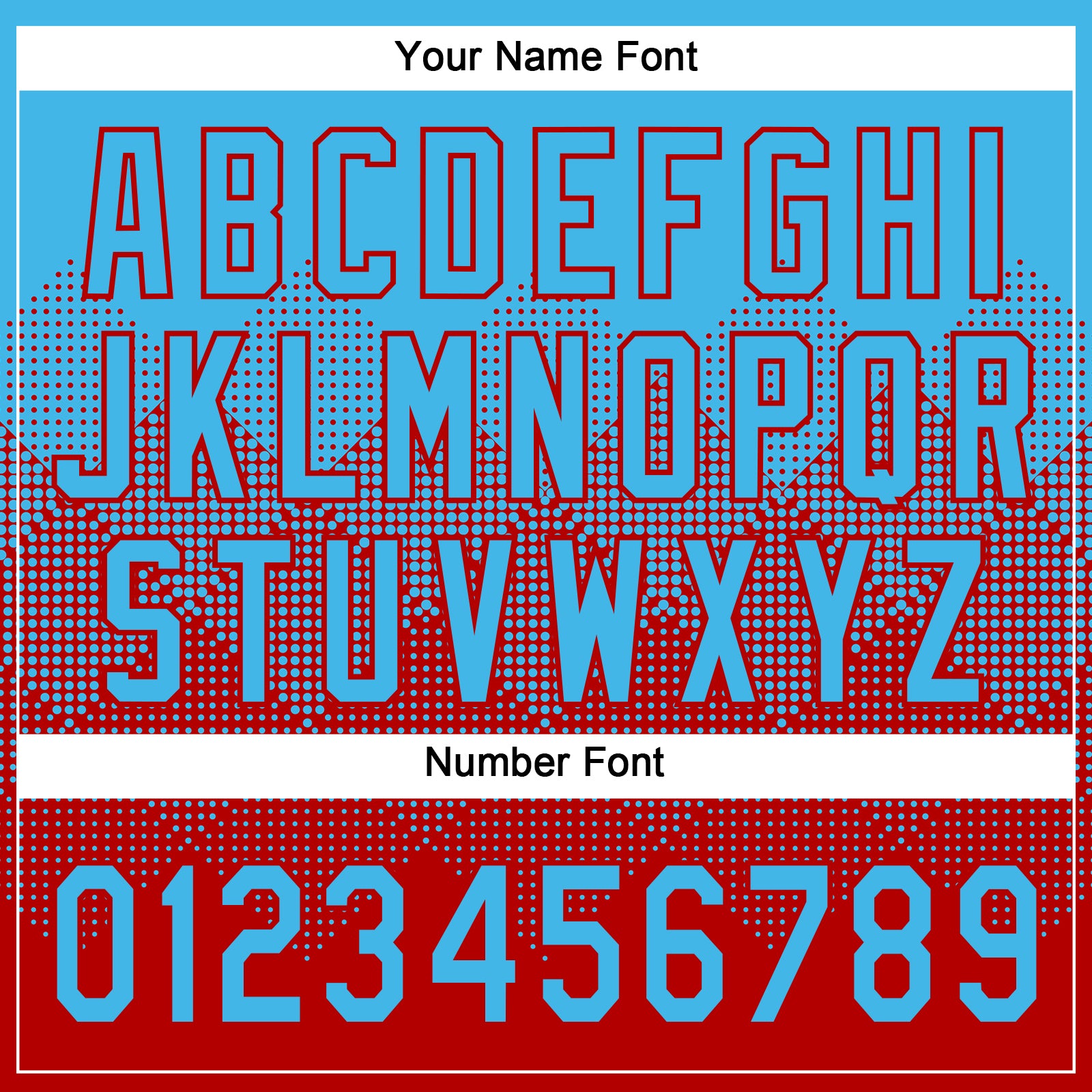 Custom Sky Blue Red 3D Gradient Square Shape Two-Button Unisex Softball Jersey