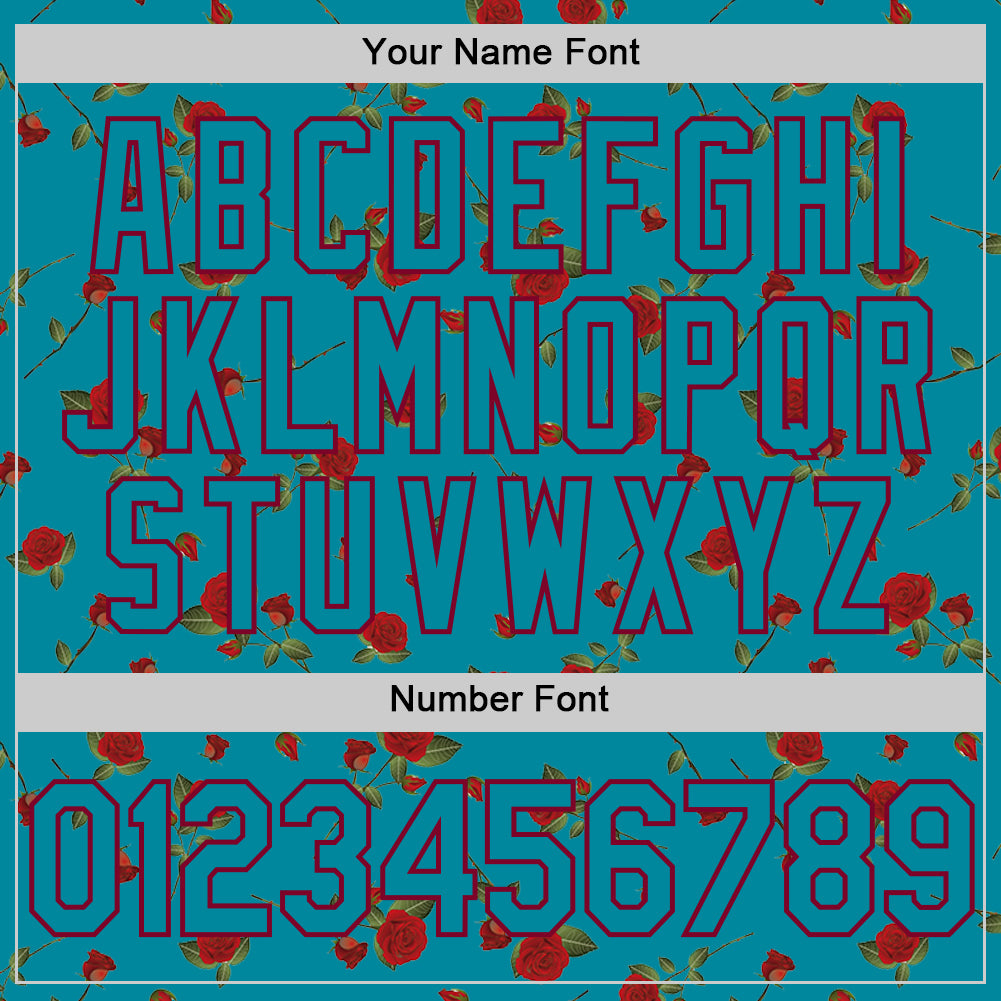 Custom Teal Maroon 3D Pattern Design Gothic Style Rose Authentic Baseball Jersey