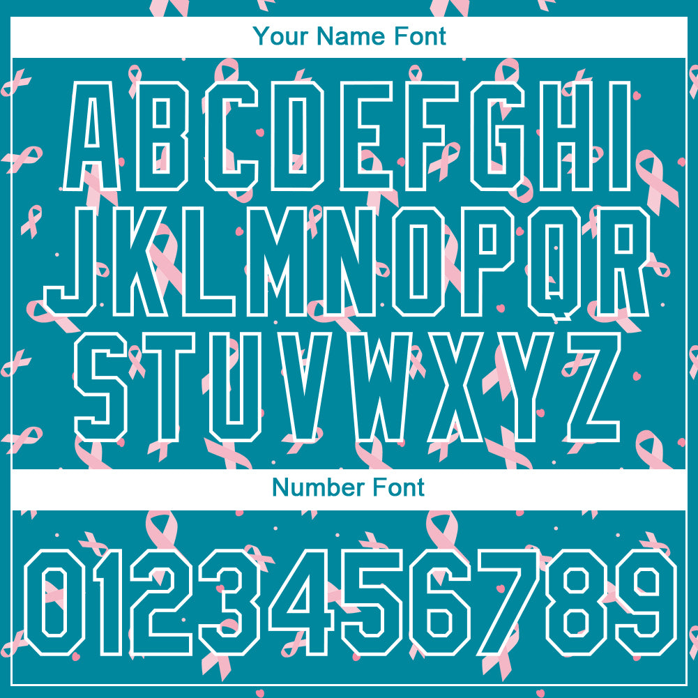 Custom Teal White 3D Pink Ribbon Breast Cancer Performance T-Shirt