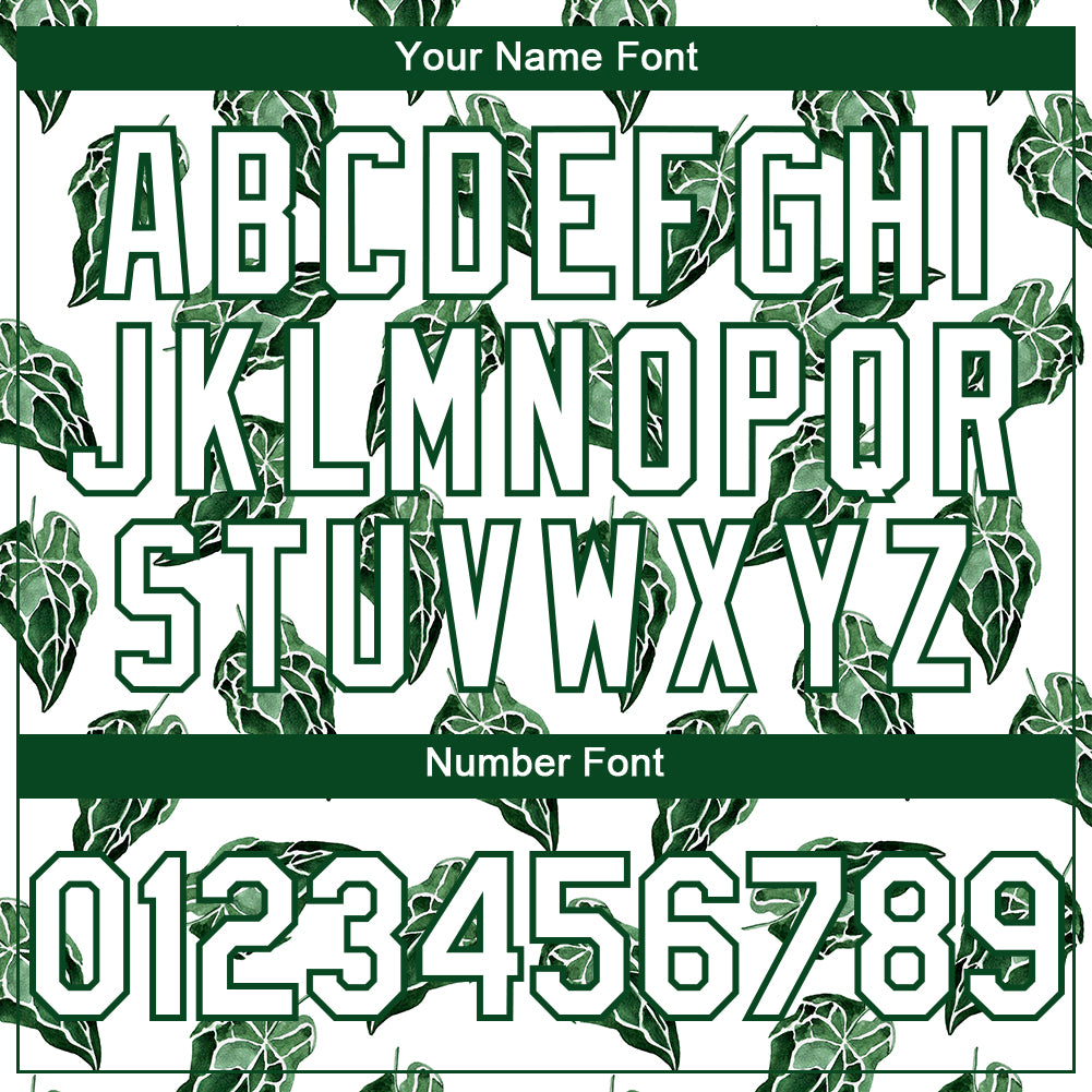Custom White Kelly Green 3D Pattern Design Tropical Anthurium Crystal Authentic Baseball Jersey