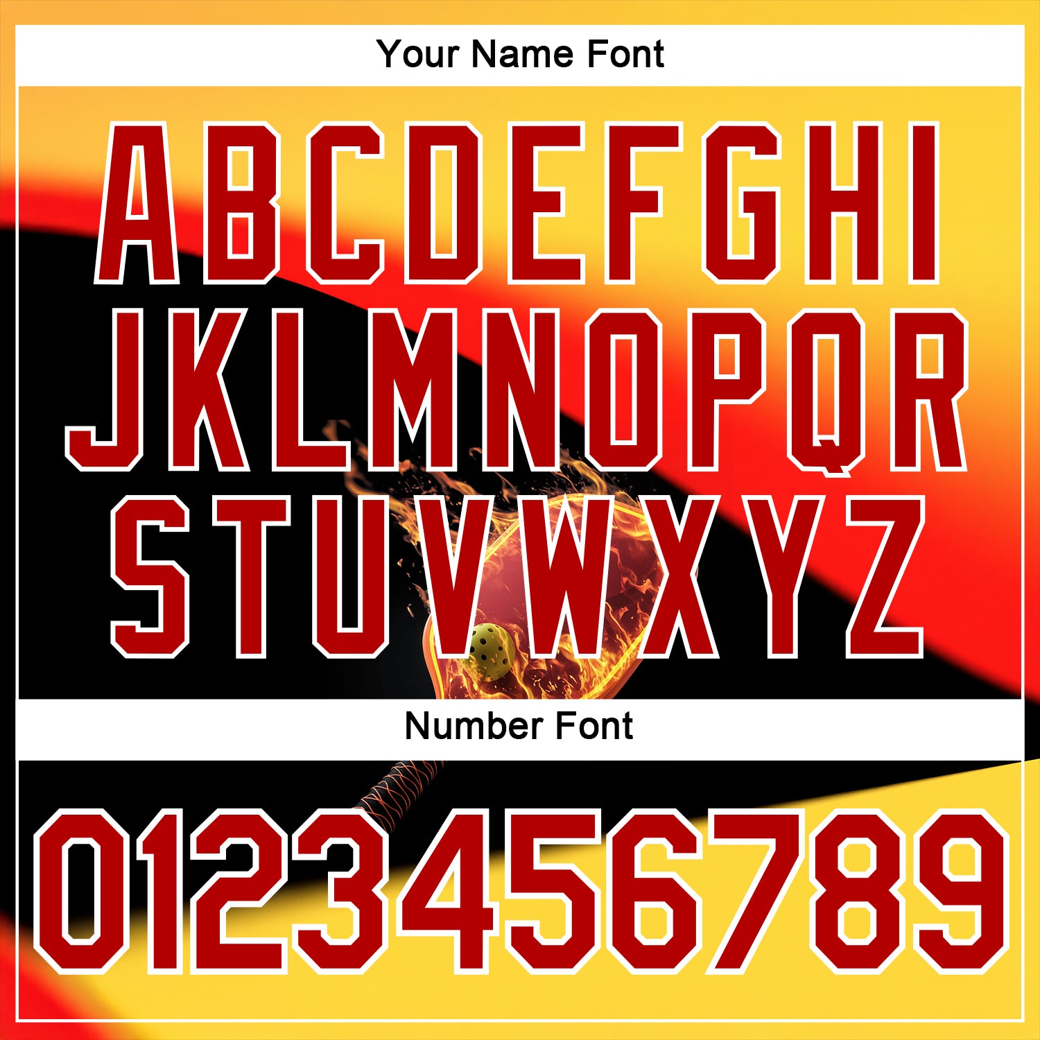 Custom Yellow Red Black-White 3D Flame Pickleball Paddles Balls Performance T-Shirt