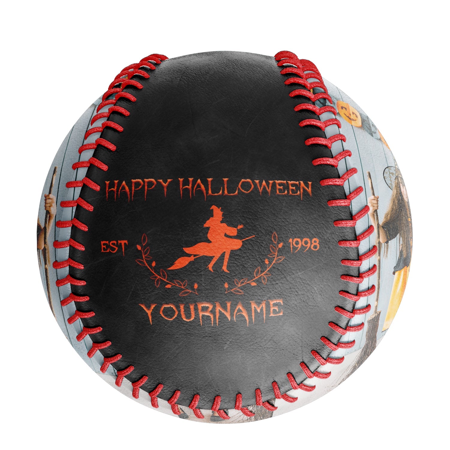 Personalized Black Happy Halloween Witch Photo Baseballs