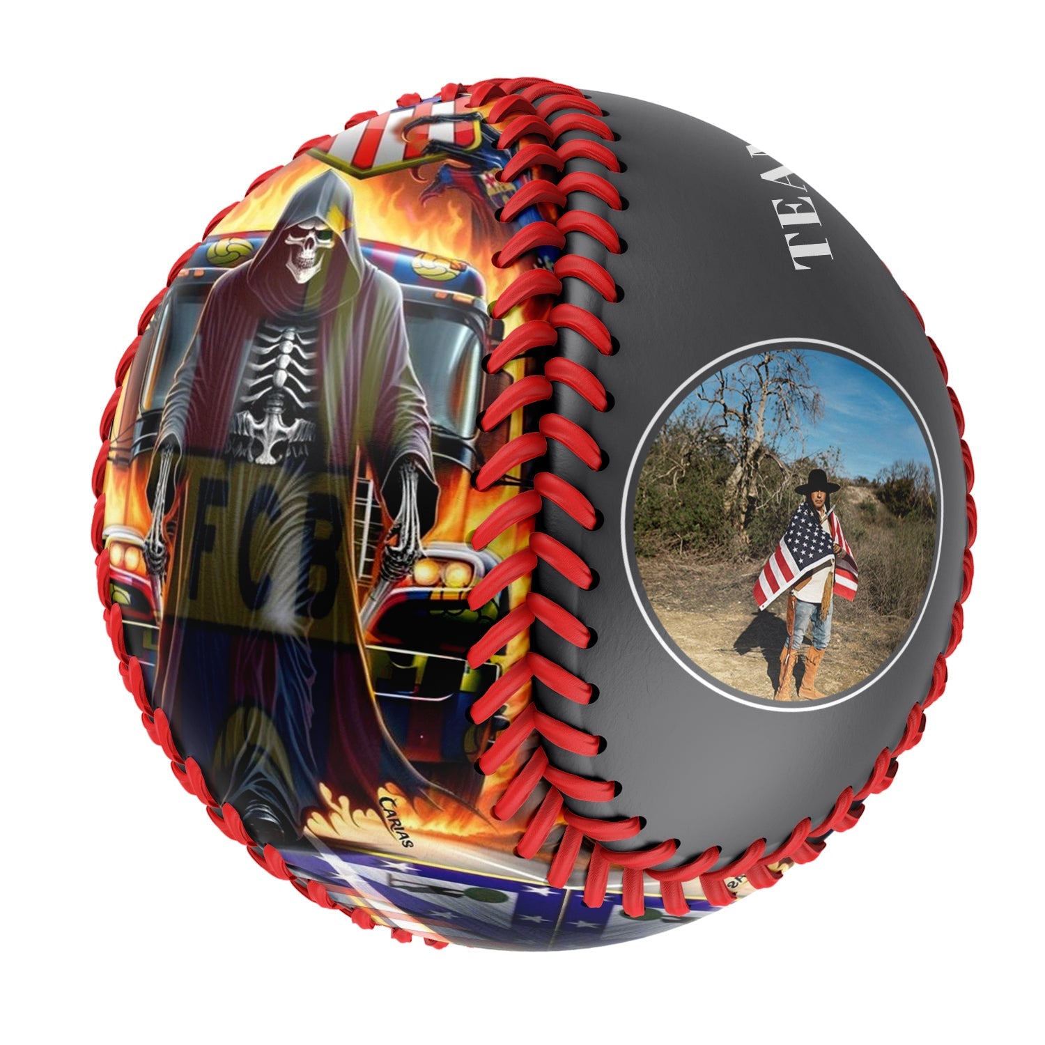 Personalized Dark Grey American Flag Truck Grim Reaper Photo Baseballs