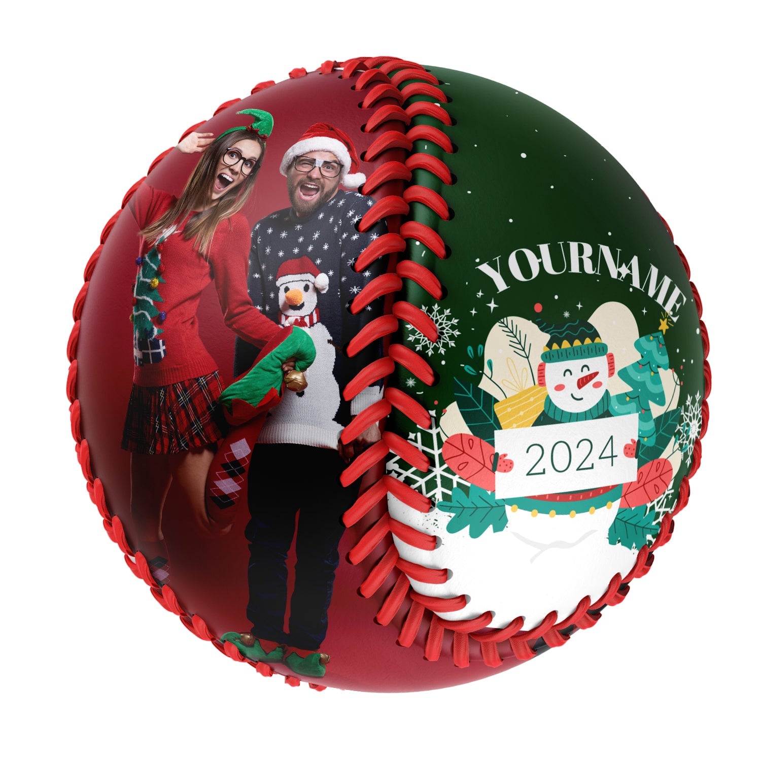 Personalized Merry Christmas Snowman Snowflake Photo Baseballs