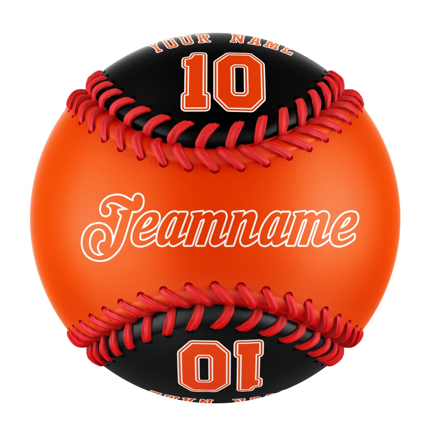 Personalized Orange Black Half Leather Orange Authentic Baseballs