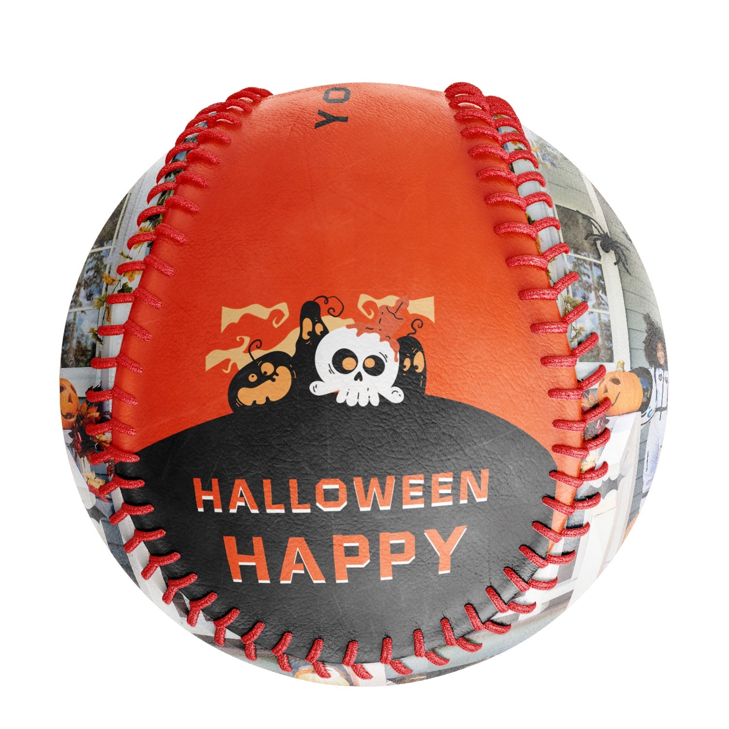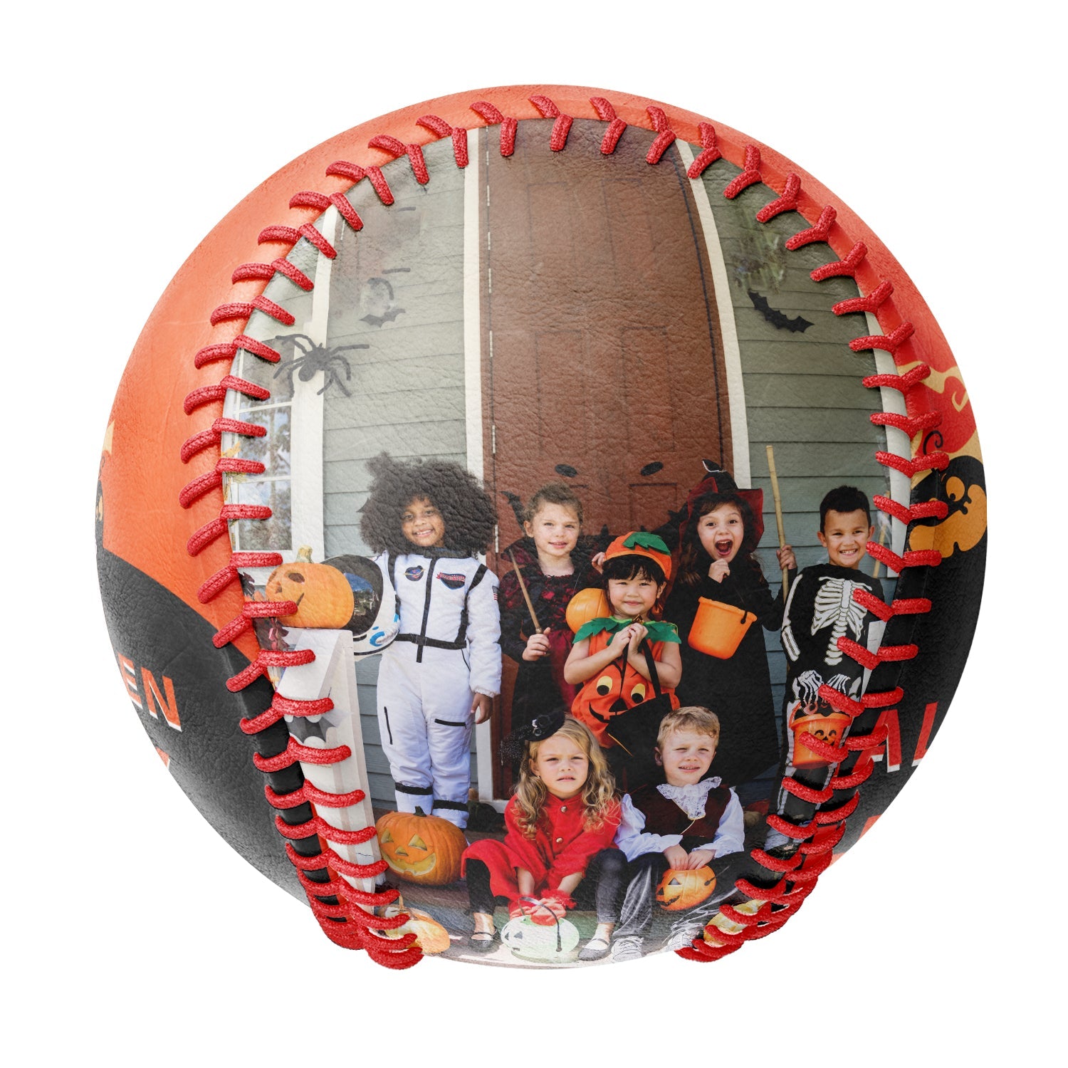 Personalized Orange Happy Halloween Pumpkin Ghost Photo Baseballs