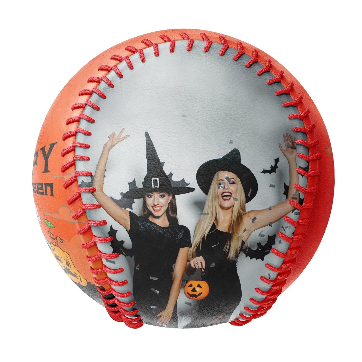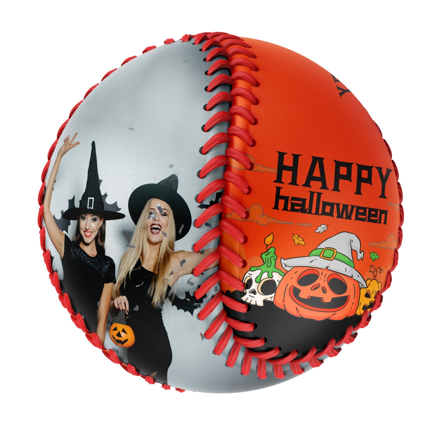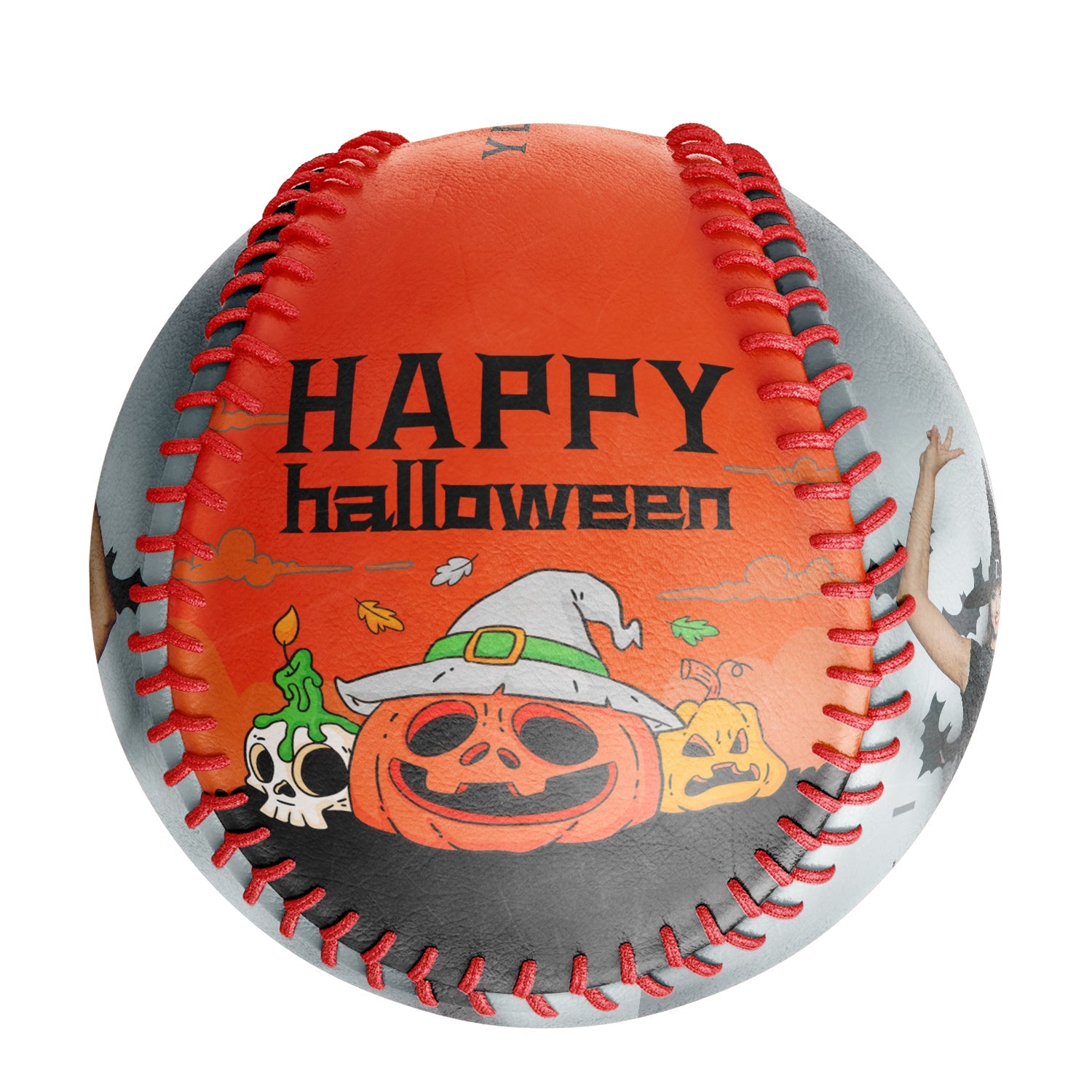 Personalized Orange Happy Halloween Pumpkin Skull Photo Baseballs