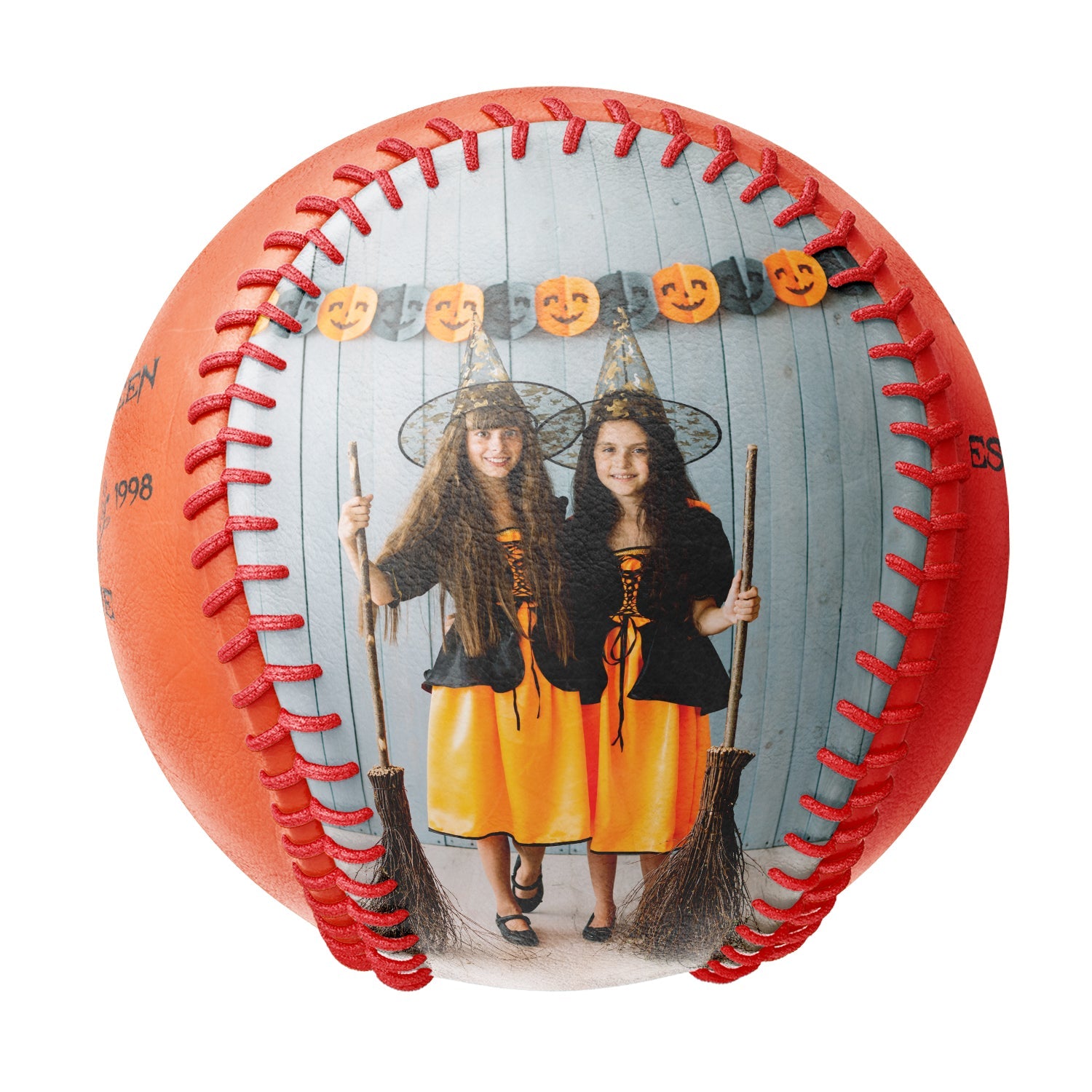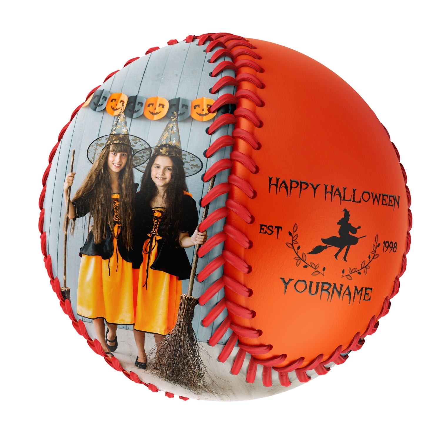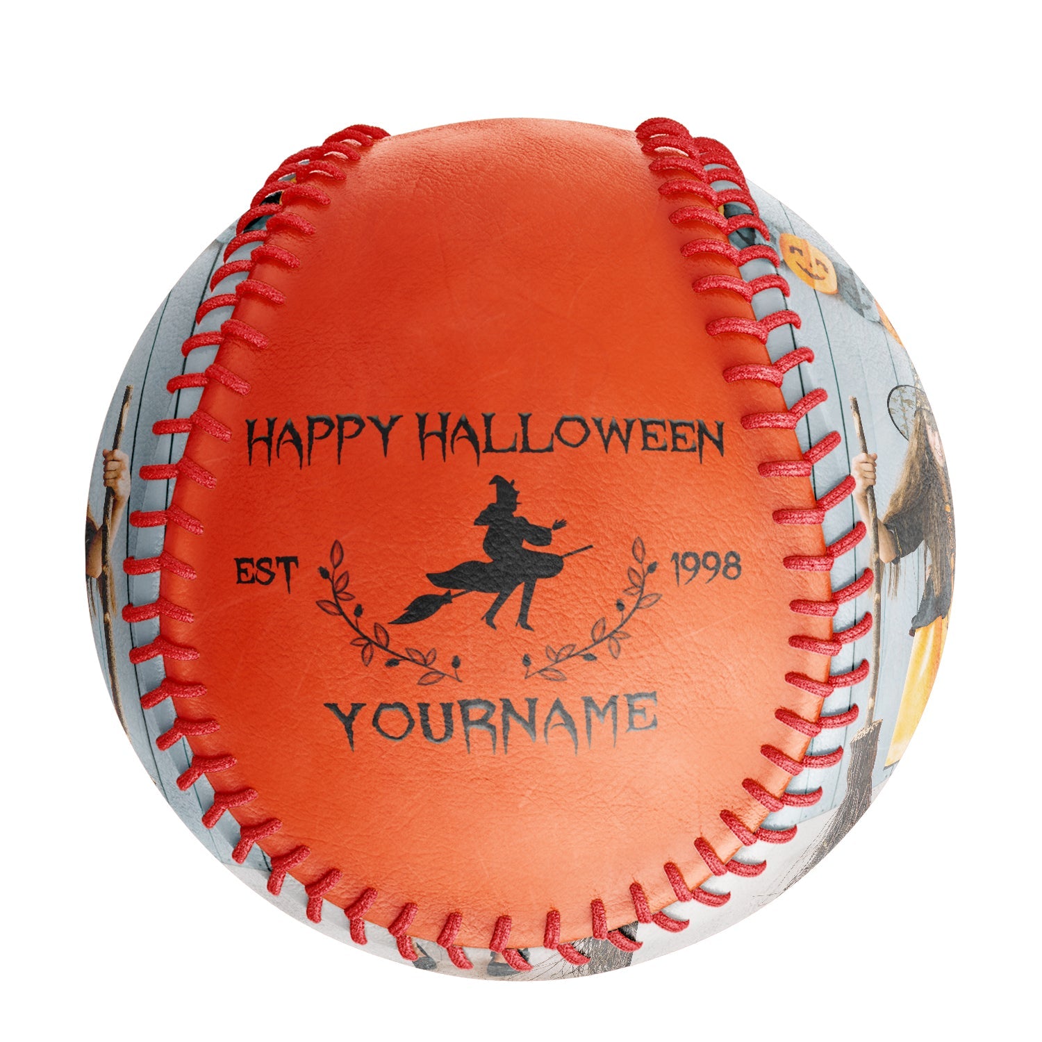 Personalized Orange Happy Halloween Witch Photo Baseballs