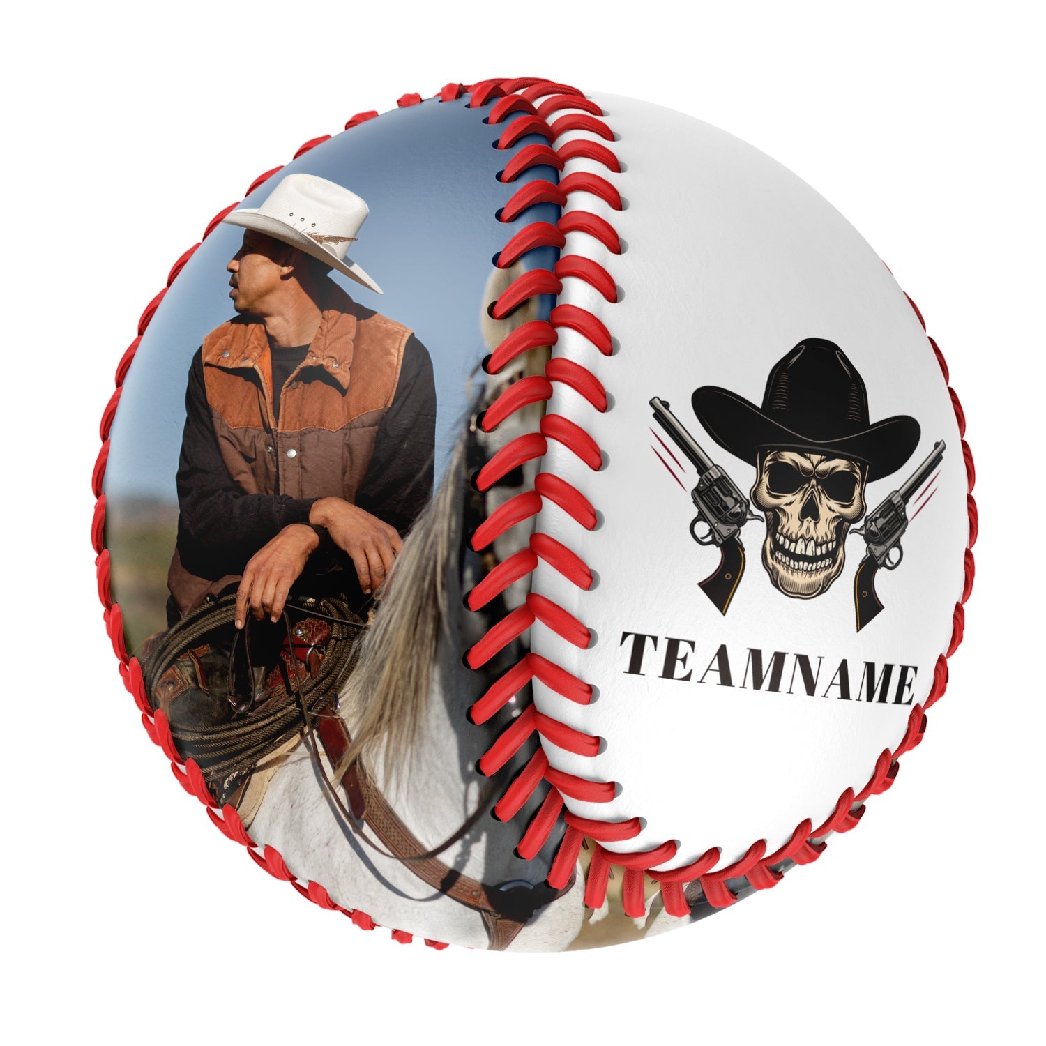 Personalized White Cowboy Skull Photo Baseballs