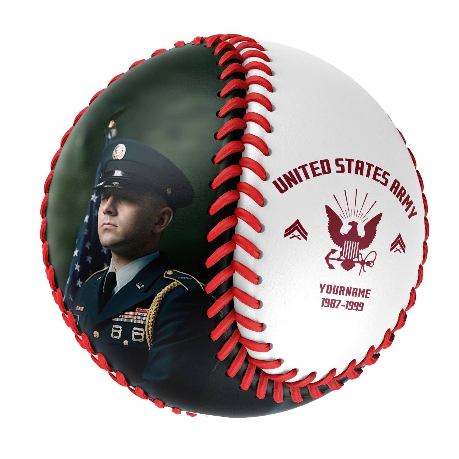 Personalized White U.S Veteran Army Photo Baseballs