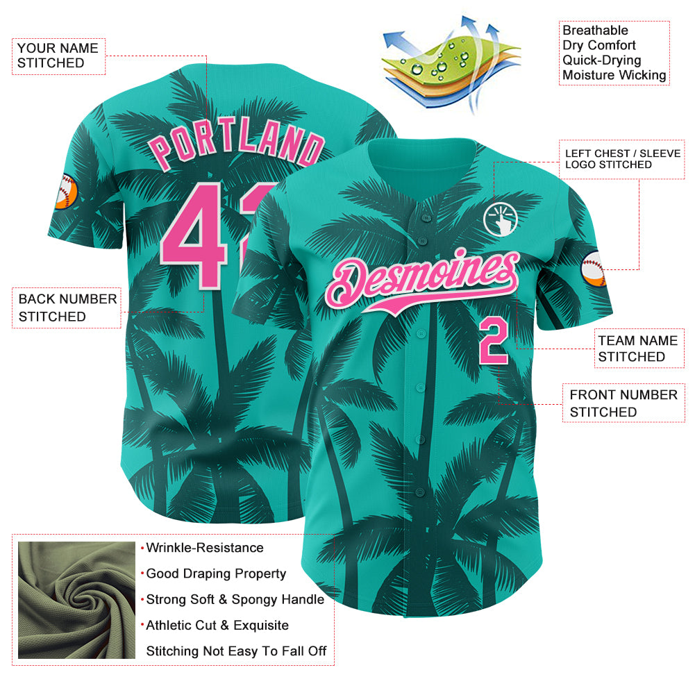 Custom Aqua Pink Teal-White Tropical Hawaii Palm Trees Authentic Baseball Jersey
