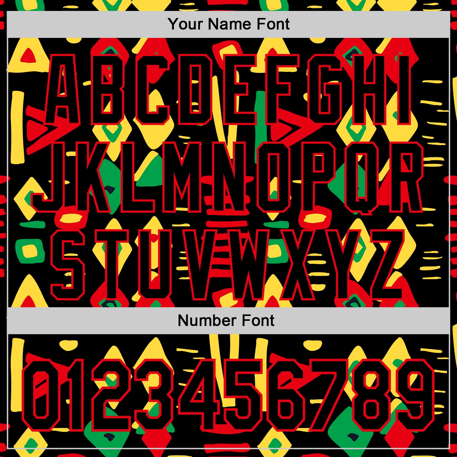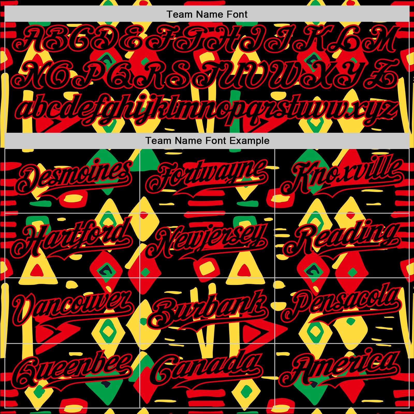 Custom Black Fire Red Green-Yellow 3D Pattern Design Black History Month African Ethnicity Style Abstract Geometric Authentic Baseball Jersey