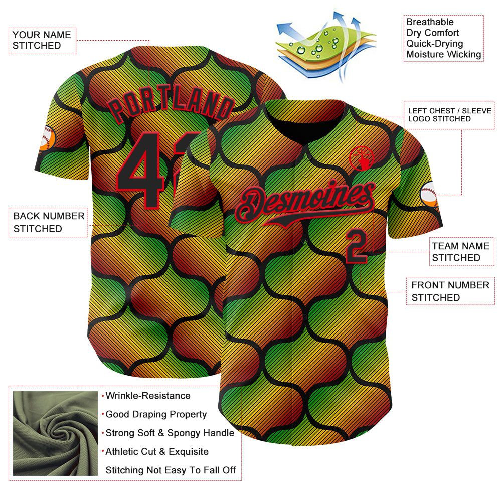 Custom Black Fire Red Green-Yellow 3D Pattern Design Black History Month Gradient African Ethnicity Style Authentic Baseball Jersey