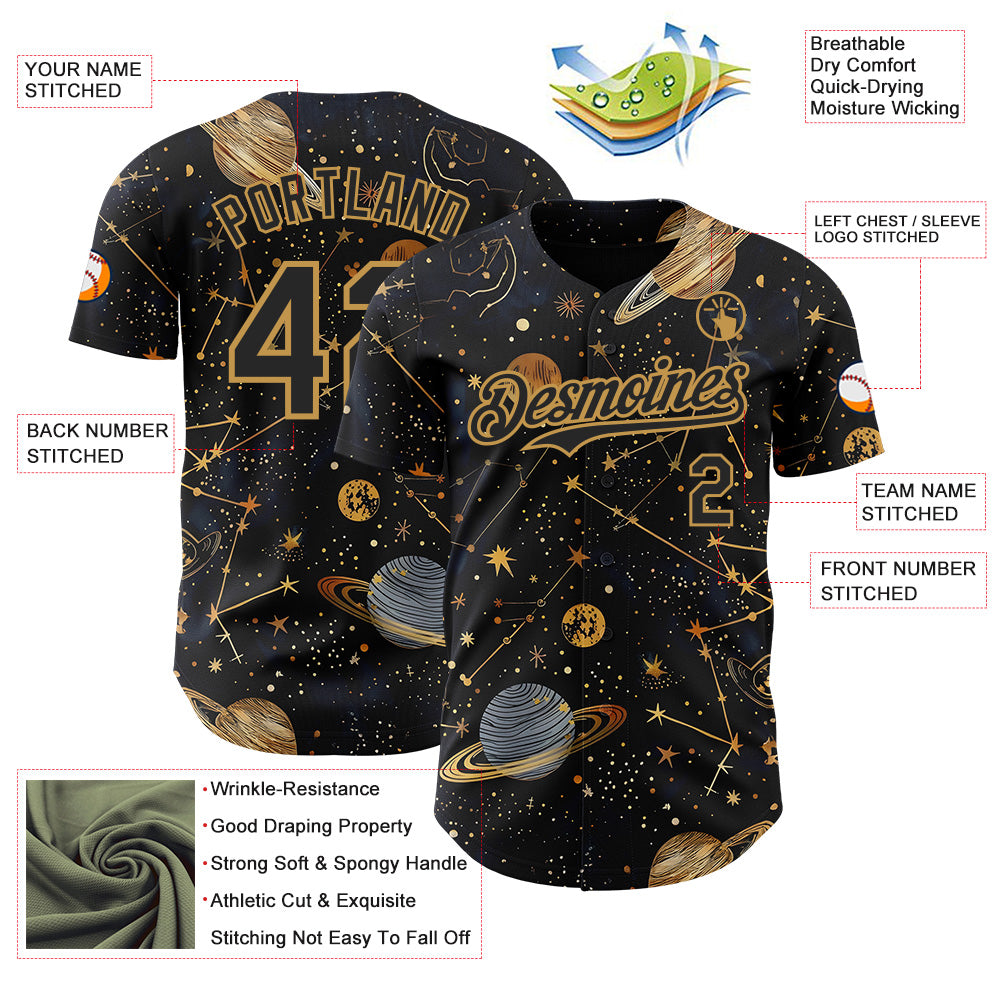 Custom Black-Vegas Gold Galaxy Star Authentic Baseball Jersey