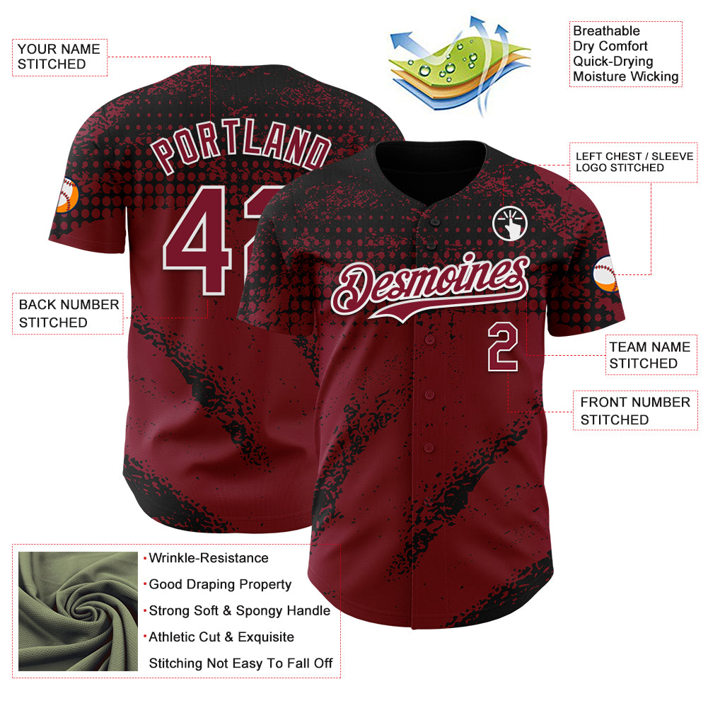 Custom Black Crimson-White 3D Pattern Design Splash Grunge Fragment Authentic Baseball Jersey