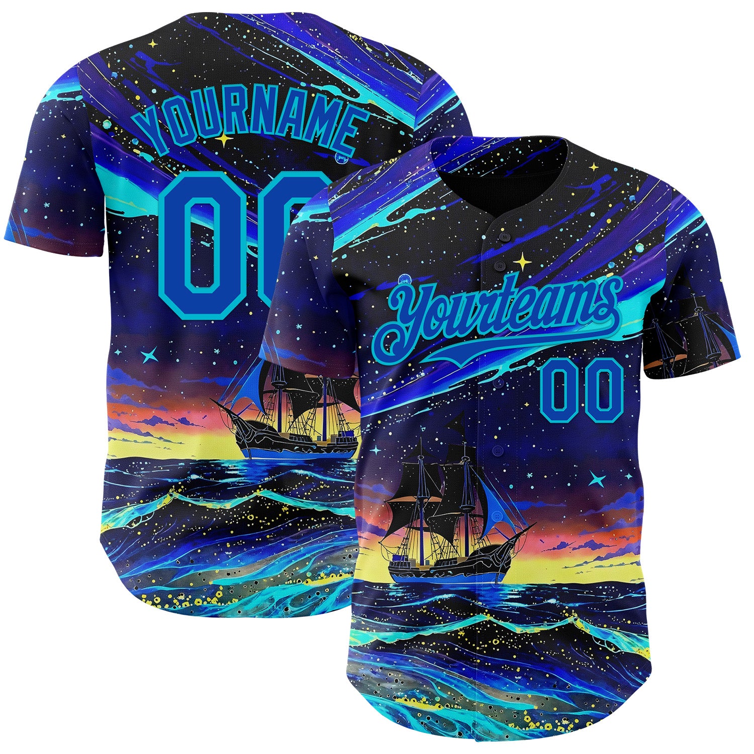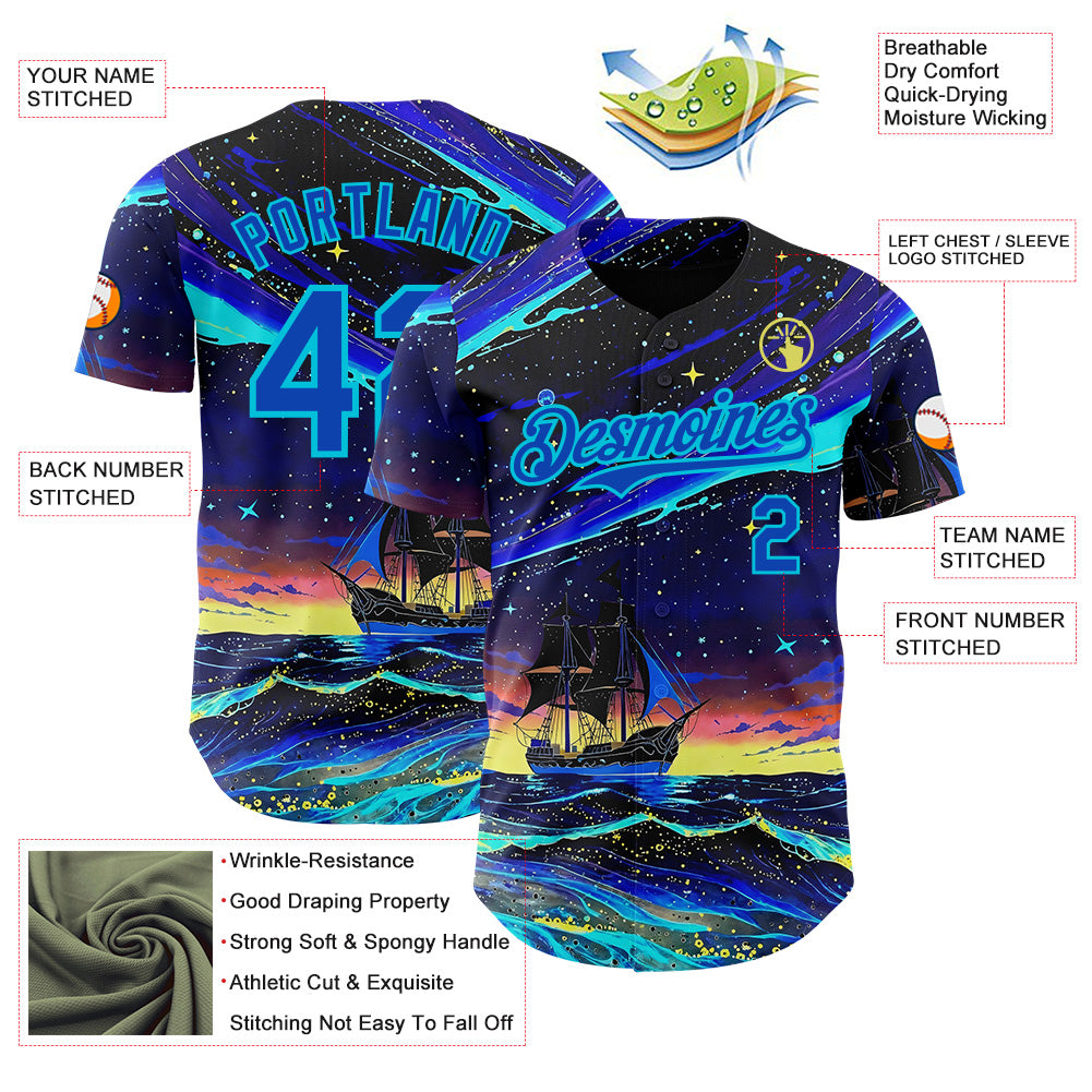 Custom Black Thunder Blue-Lakes Blue Galaxy Star Authentic Baseball Jersey
