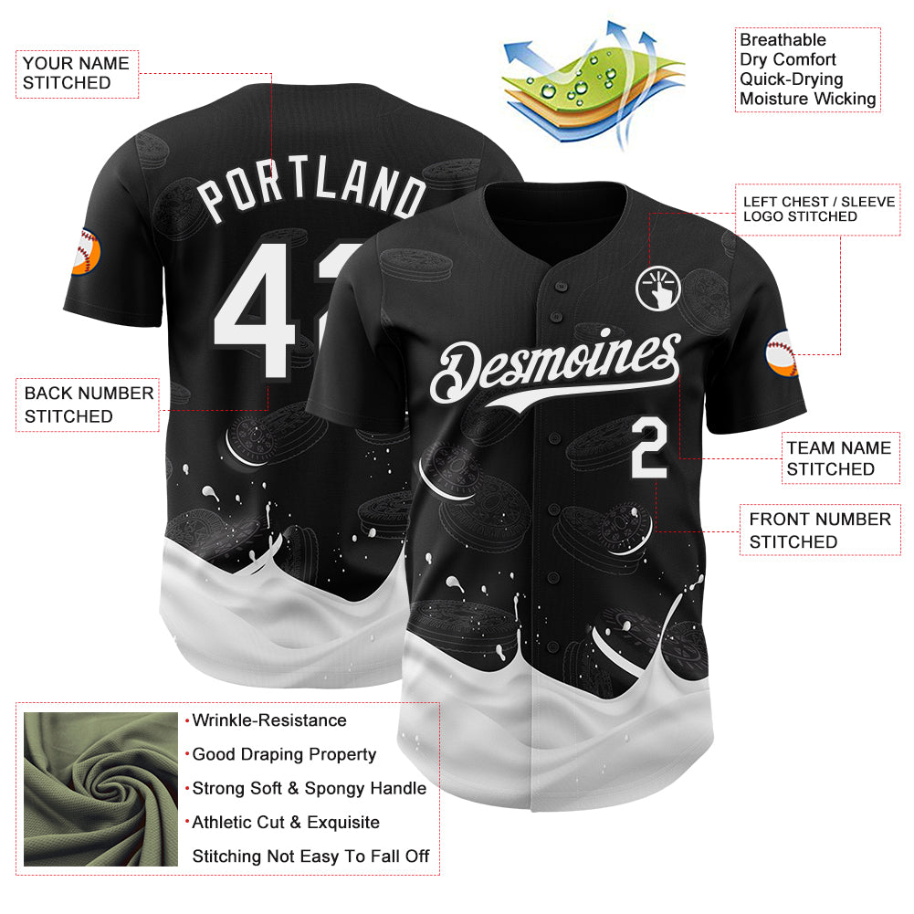 Custom Black-White Foodie Food Cookies And Milk Authentic Baseball Jersey