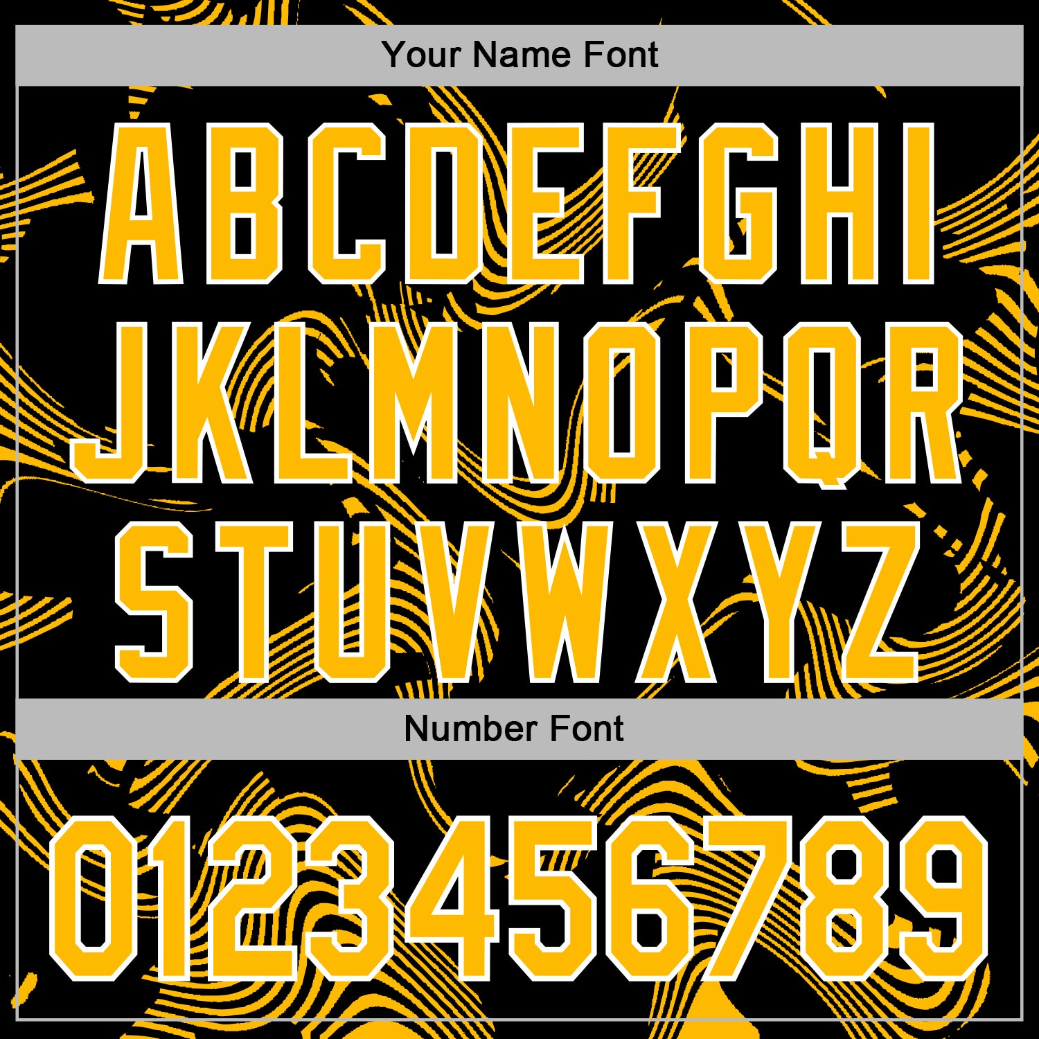 Custom Stitched Black Gold-White 3D Pattern Design Curve Lines Sports Pullover Sweatshirt Hoodie