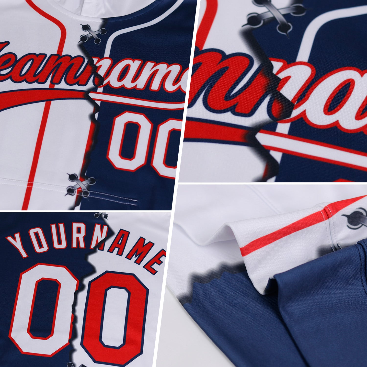 Custom Black Gray-White Split Ripped Pattern Baseball Pullover Sweatshirt Hoodie