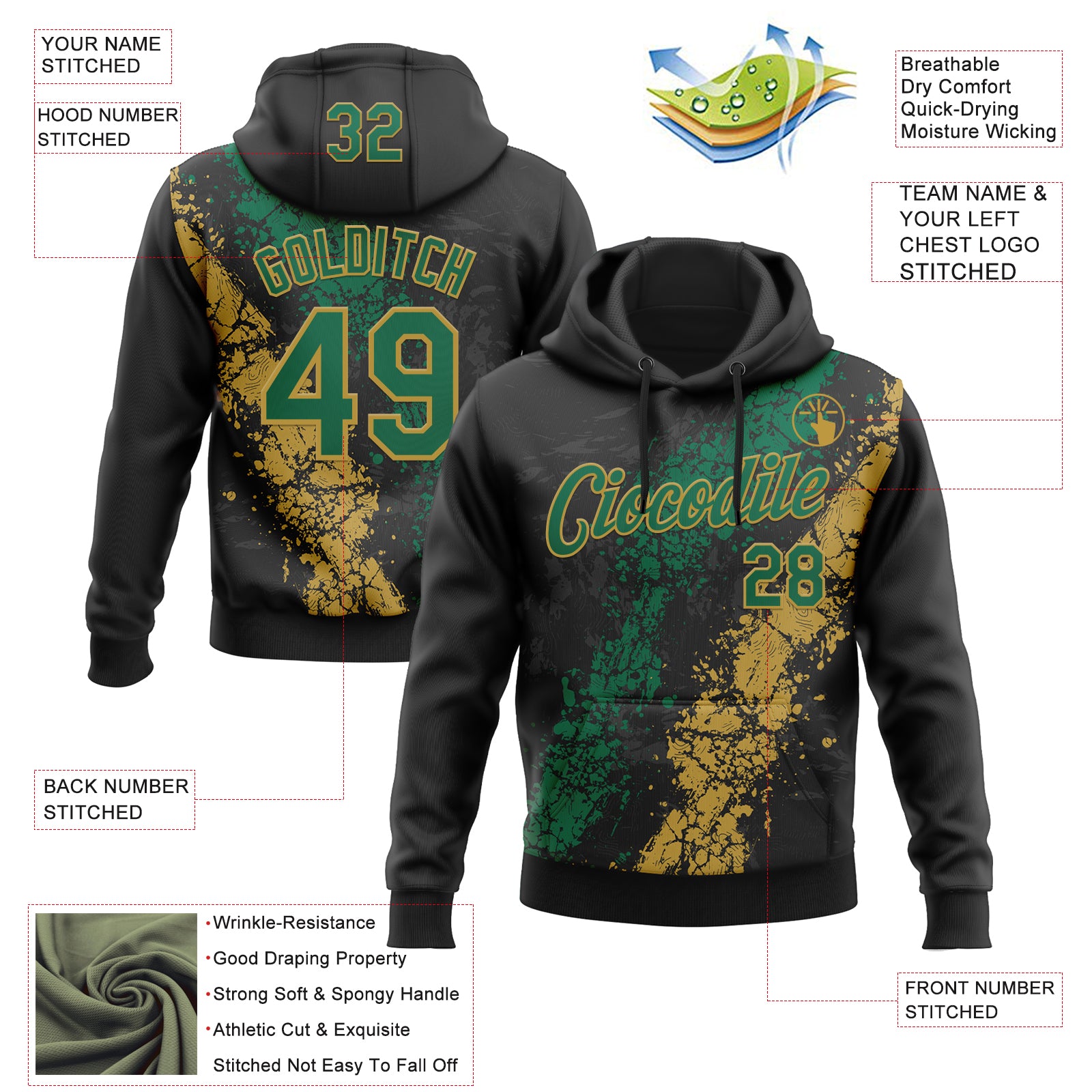 Custom Stitched Black Kelly Green-Old Gold 3D Pattern Design Splash Sports Pullover Sweatshirt Hoodie
