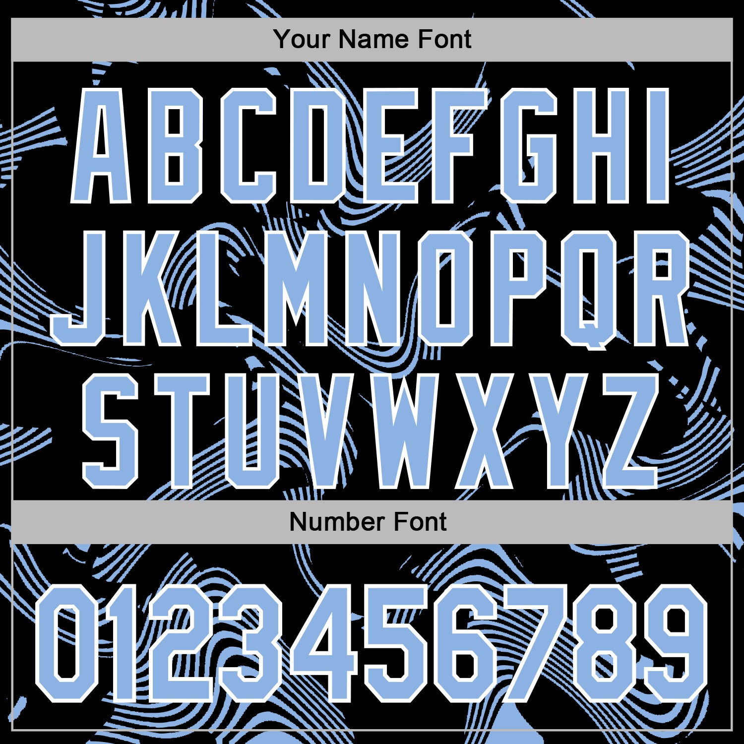 Custom Stitched Black Light Blue-White 3D Pattern Design Curve Lines Sports Pullover Sweatshirt Hoodie