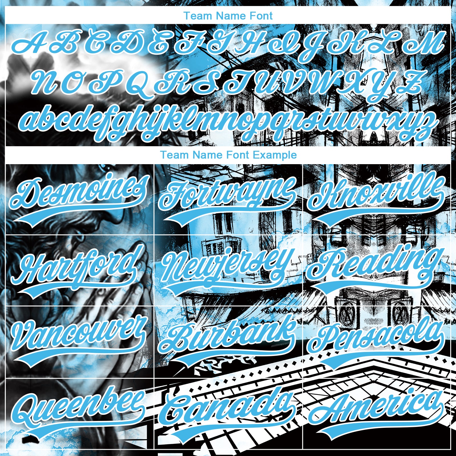 Custom Stitched Black Sky Blue-White 3D Pattern Design Religion Praying Hands Pullover Sweatshirt Hoodie