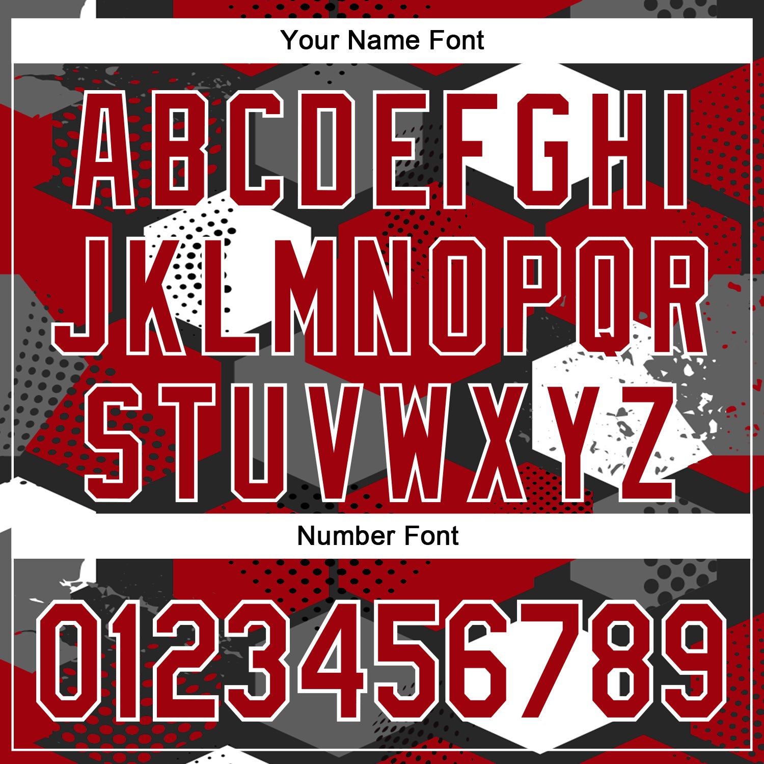 Custom Black Red-White Geometric Shape 3D Pattern Design Bomber Full-Snap Varsity Letterman Hoodie Jacket