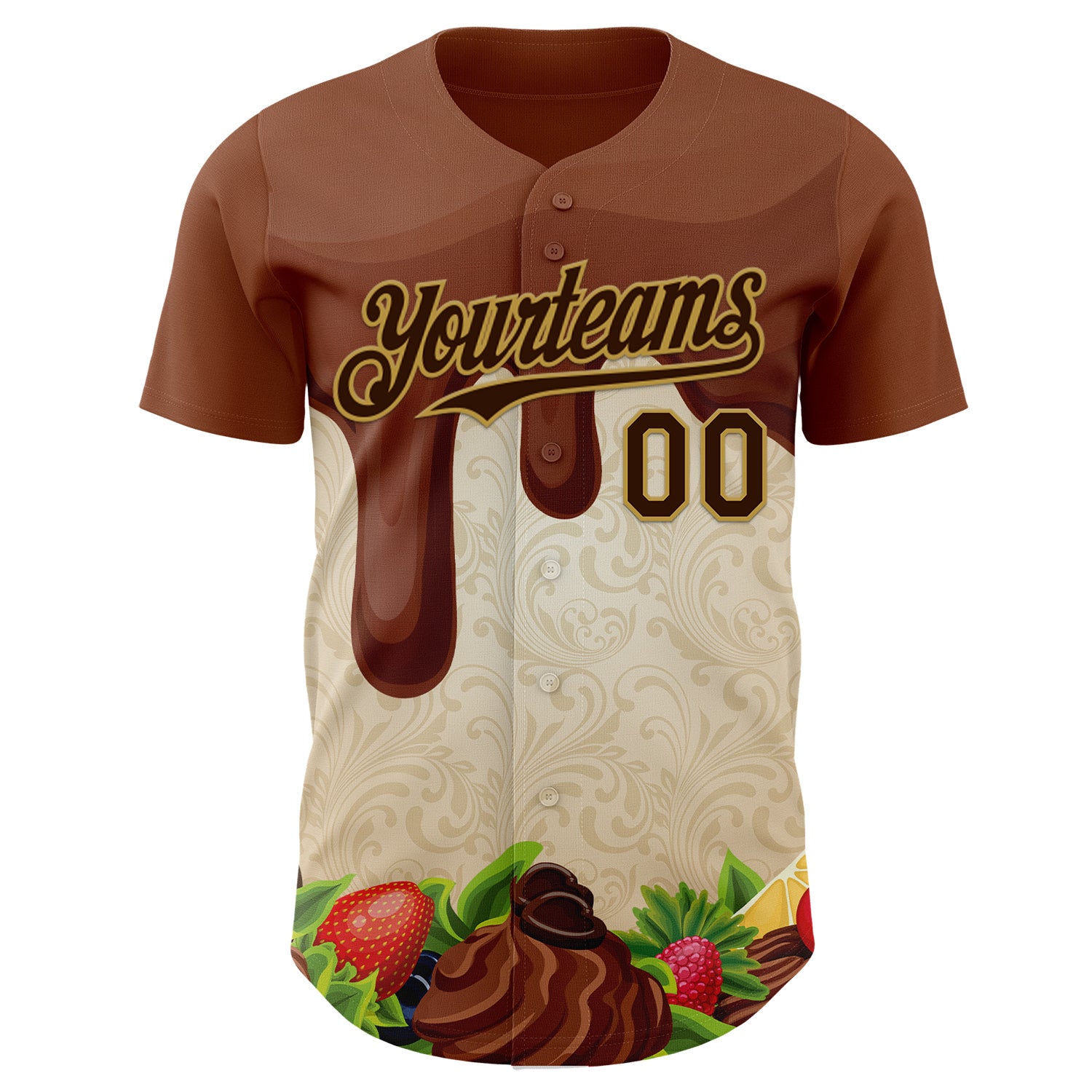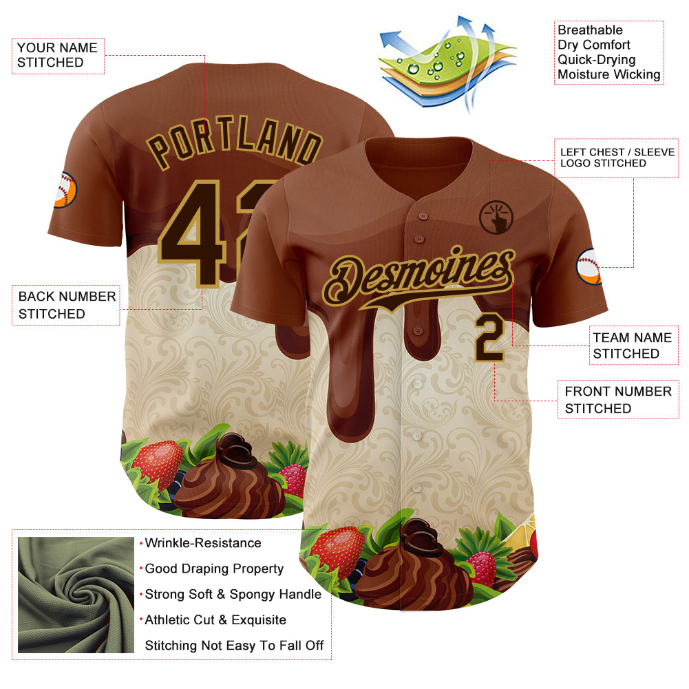 Custom Brown Cream-Old Gold Foodie Food Dessert Chocolate Fruit Authentic Baseball Jersey