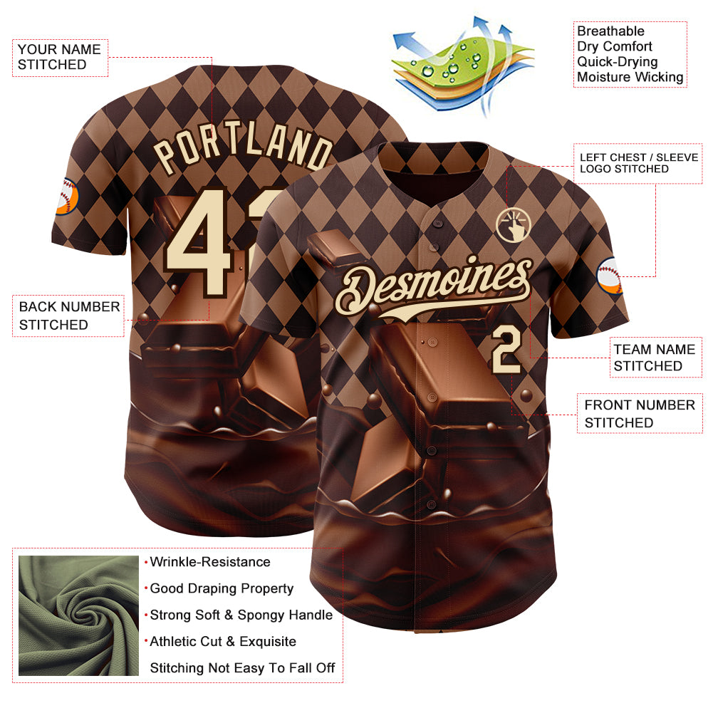 Custom Brown-Cream Foodie Food Dessert Chocolate Authentic Baseball Jersey