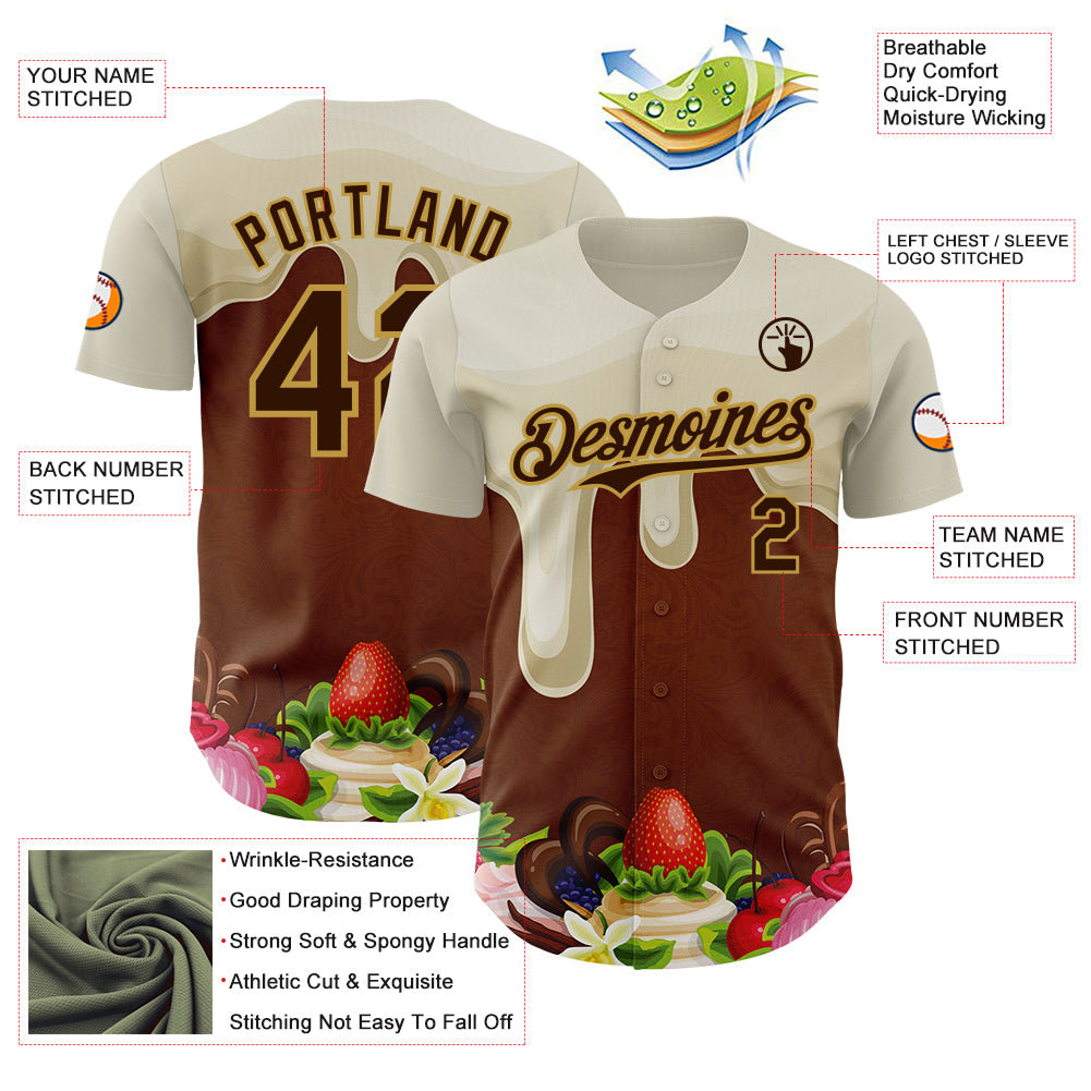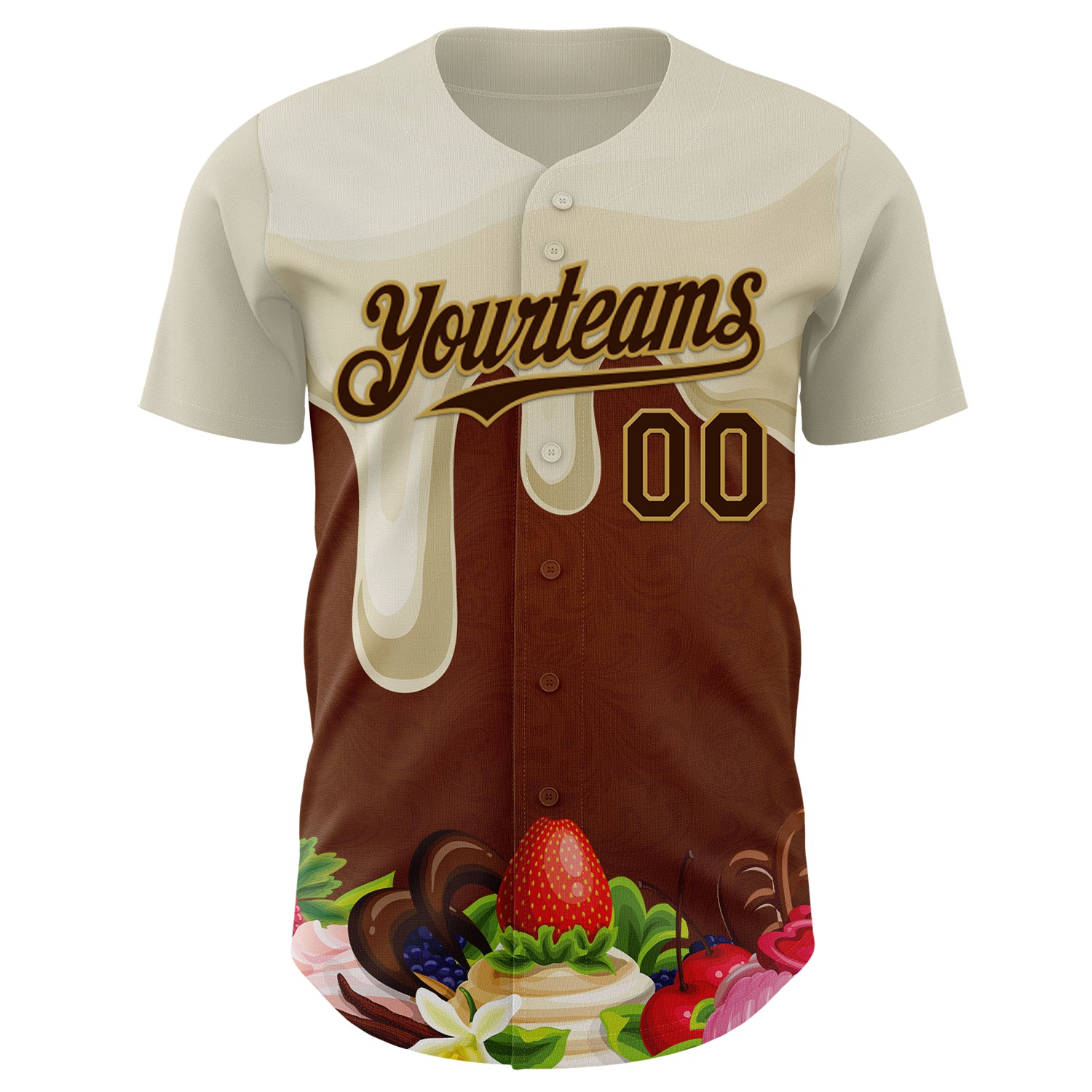 Custom Cream Brown-Old Gold Foodie Food Dessert Chocolate Fruit Authentic Baseball Jersey
