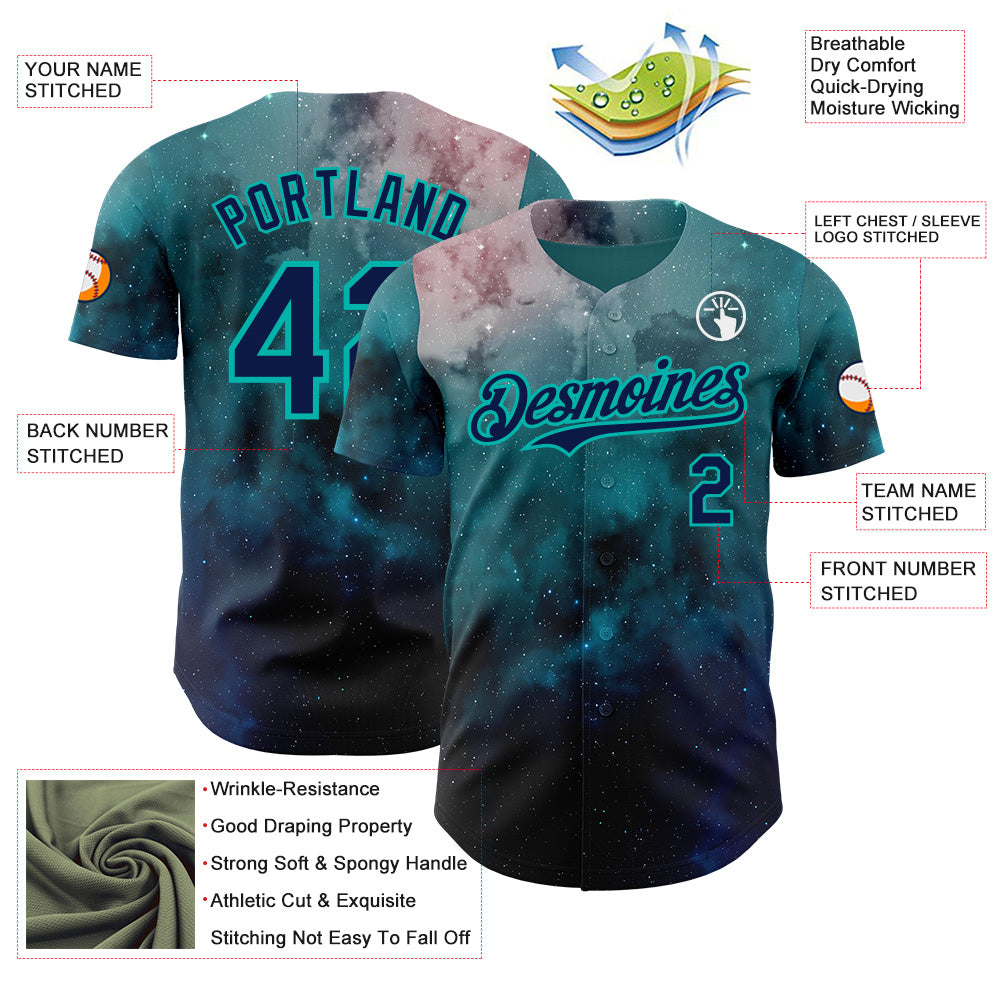 Custom Green Navy-Aqua Galaxy Star Nebula Authentic Baseball Jersey