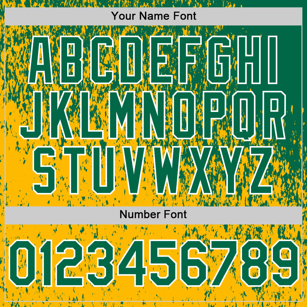 Custom Kelly Green Gold-White 3D Pattern Design Abstract Fragment Splatter Authentic Baseball Jersey