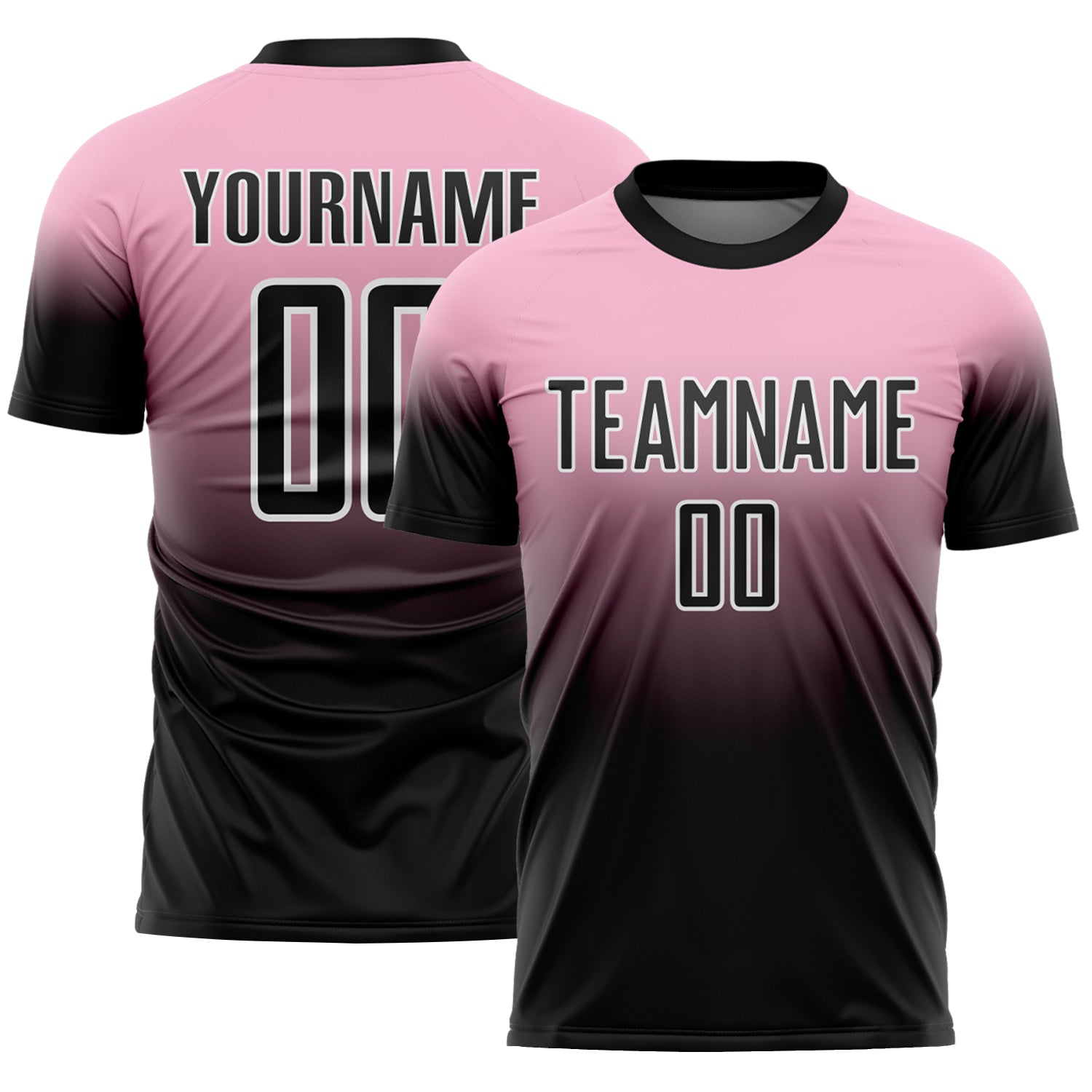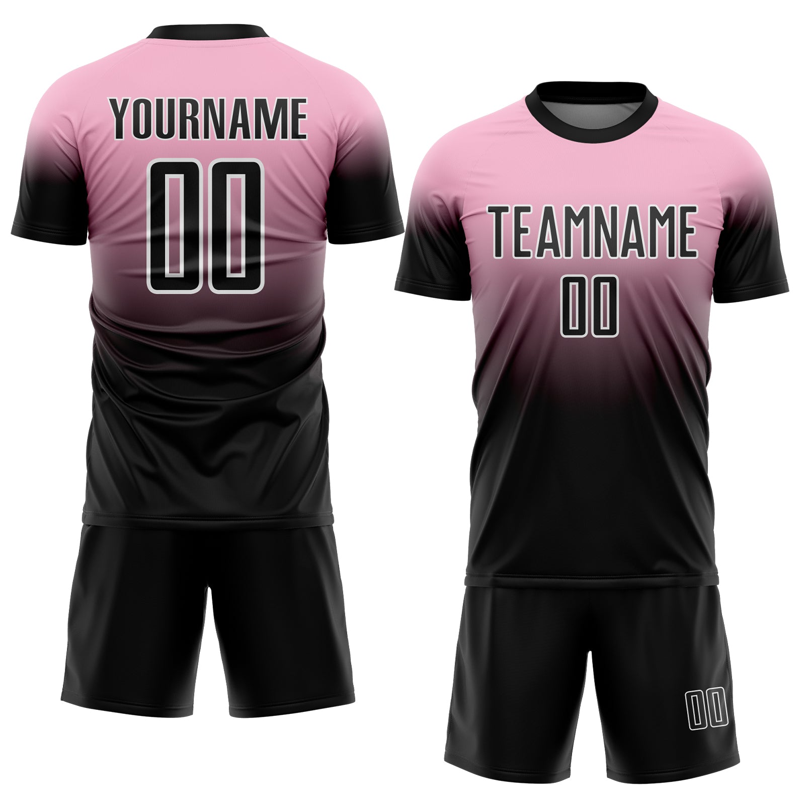 Custom Light Pink Black-White Fade Fashion Sublimation Soccer Uniform Jersey