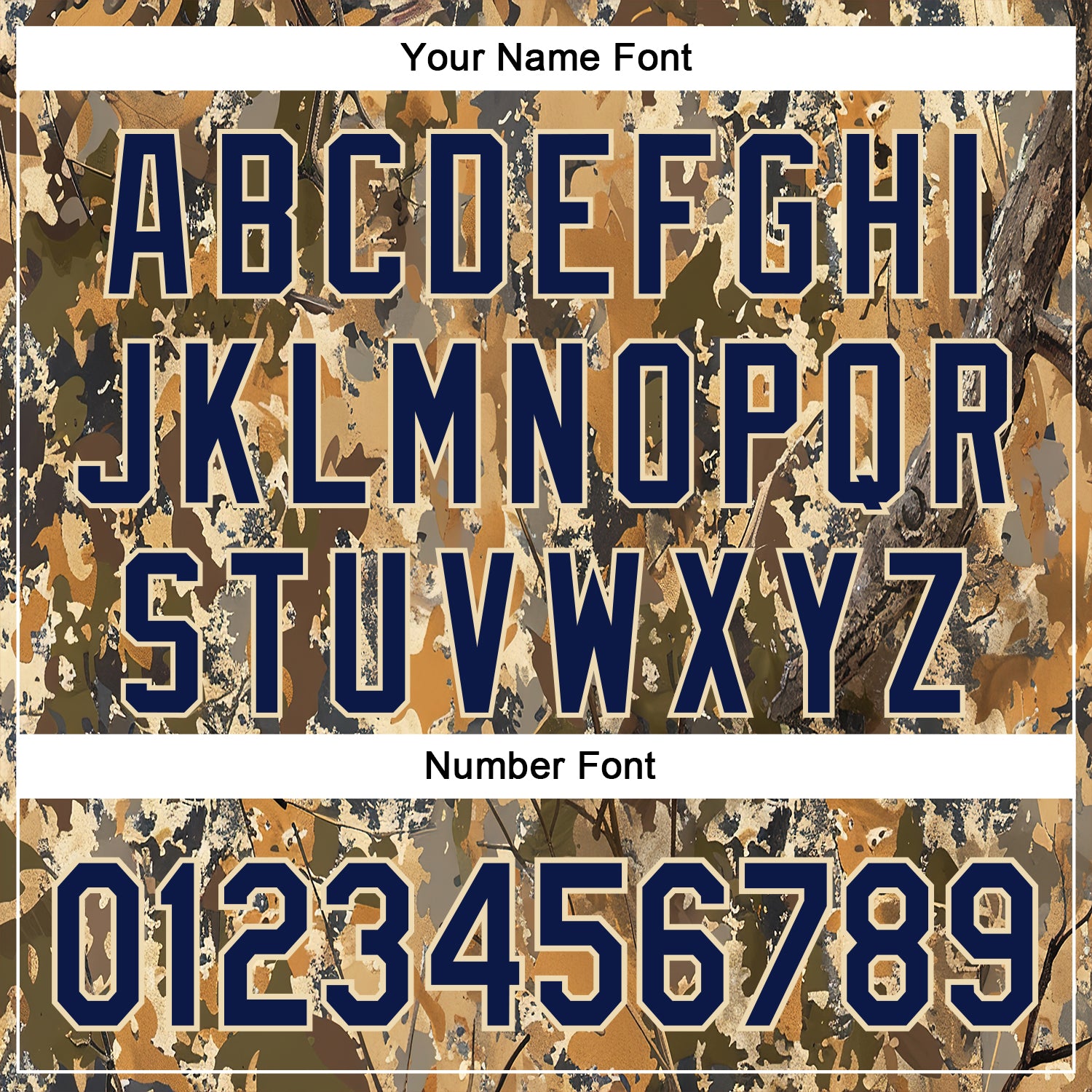 Custom Stitched Old Gold Navy-Cream 3D Pattern Design Tree Camo Hunting Sports Pullover Sweatshirt Hoodie
