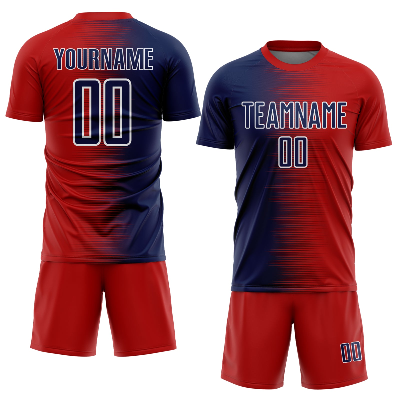 Custom Red Navy-White Gradient Line Sublimation Soccer Uniform Jersey